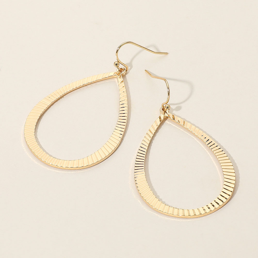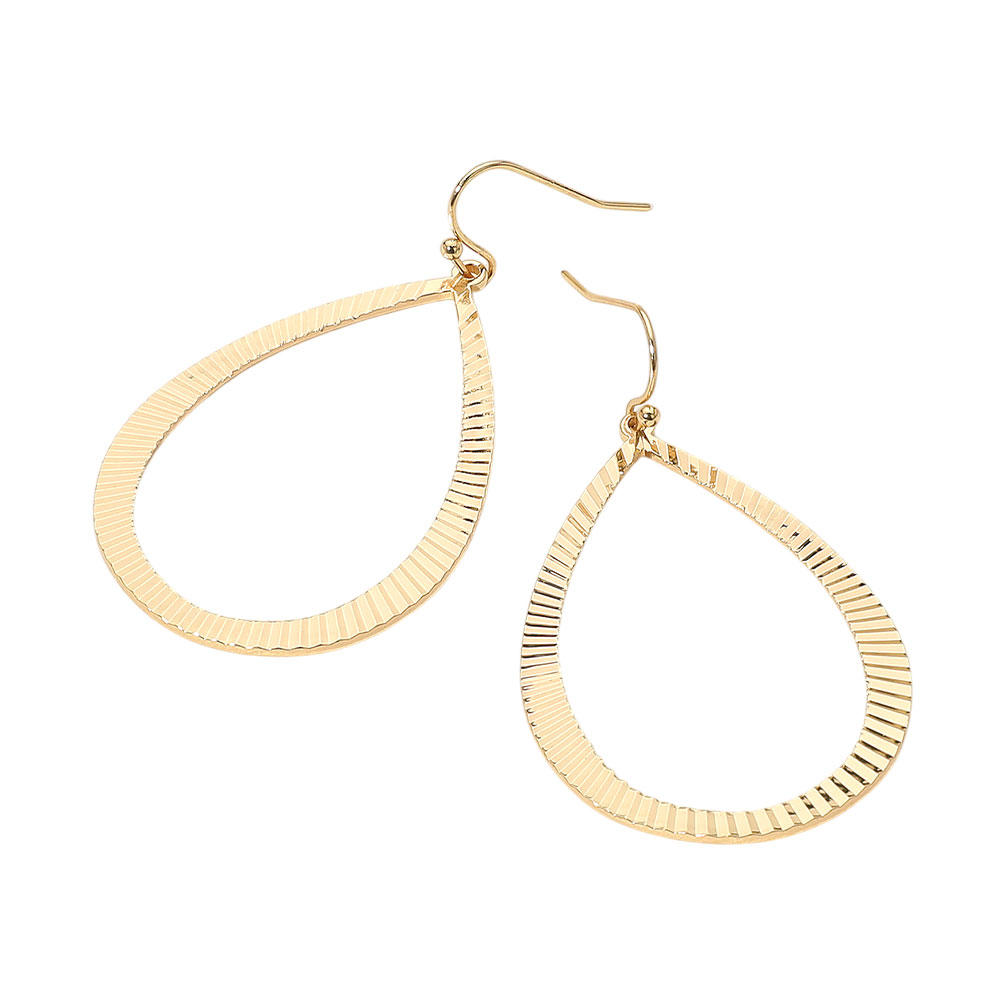 Ribbed Metal Open Teardrop Dangle Earrings Ribbed Metal Open Teardrop Dangle Earrings