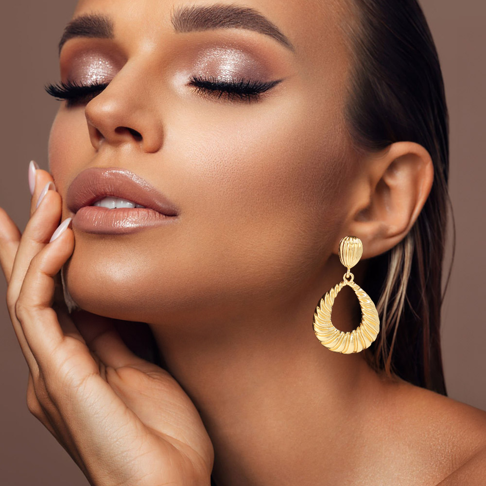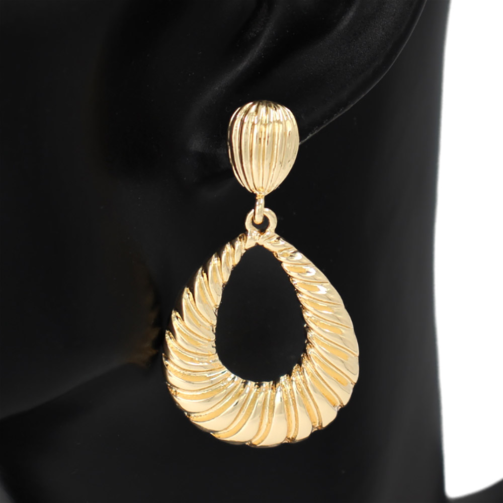Details • Size : 1.2" X 2" • Post Back • Elevate any look with these striking teardrop statement earrings featuring a sculpted swirl design that adds dimension and movement. Their bold silhouette makes them ideal for both everyday styling and elevated occasions, offering a standout accessory that enhances any ensemble. • Lead and Nickel Compliant