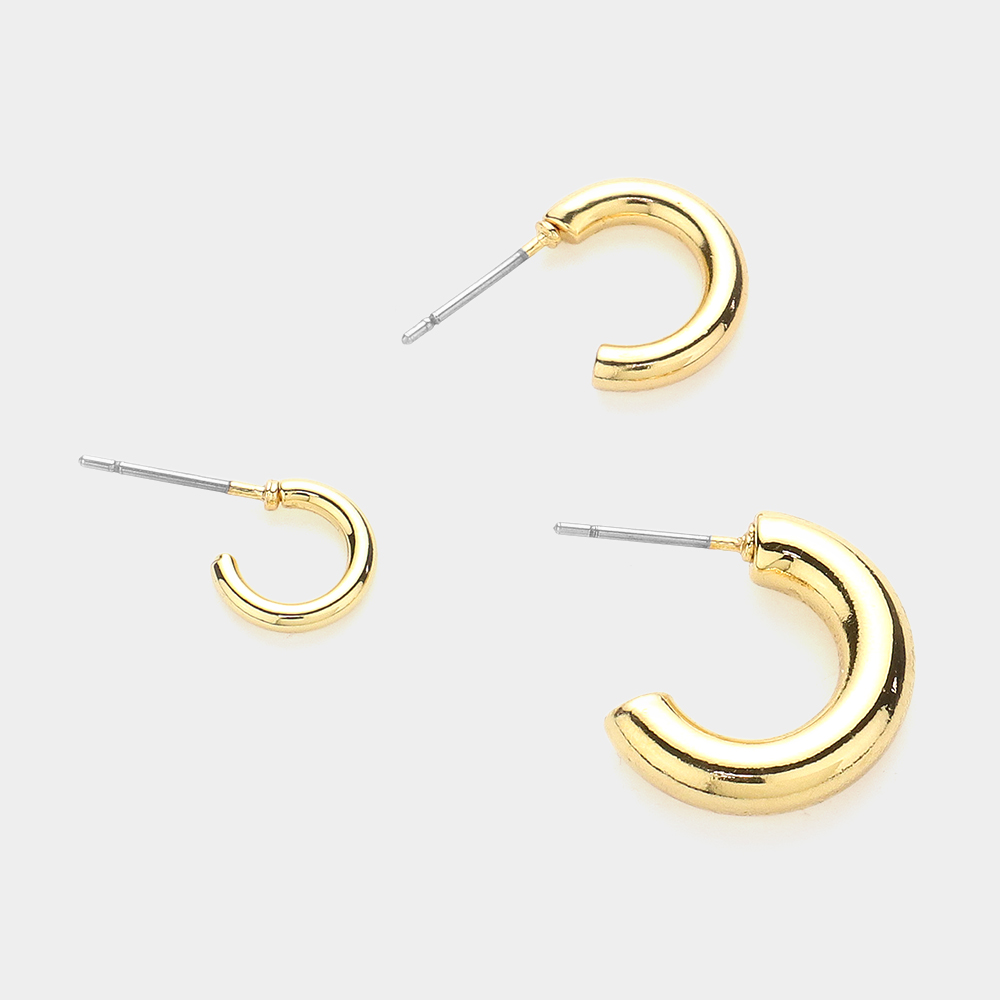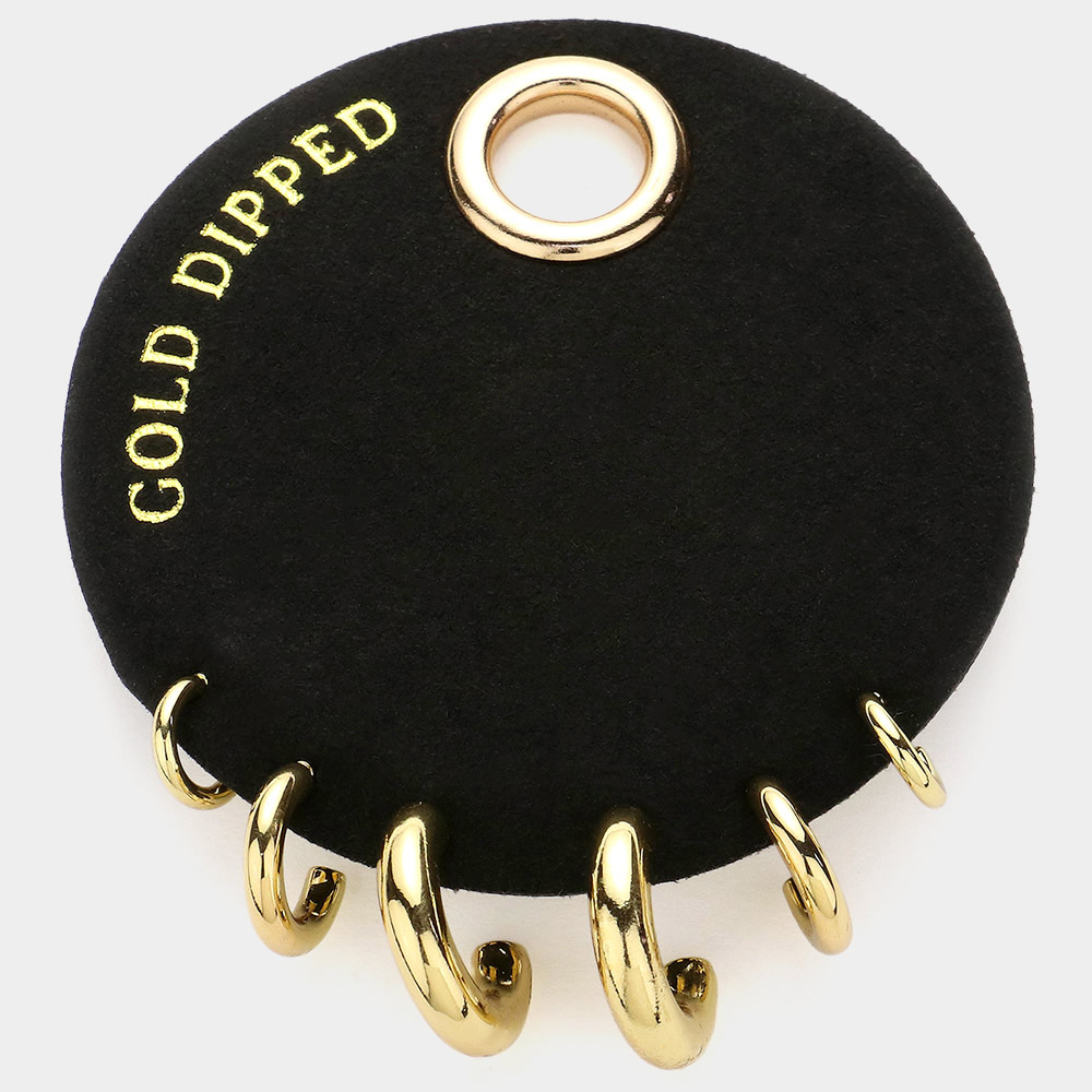 SECRET BOX_Gold Dipped Metal Hoop 3 Pairs Earrings