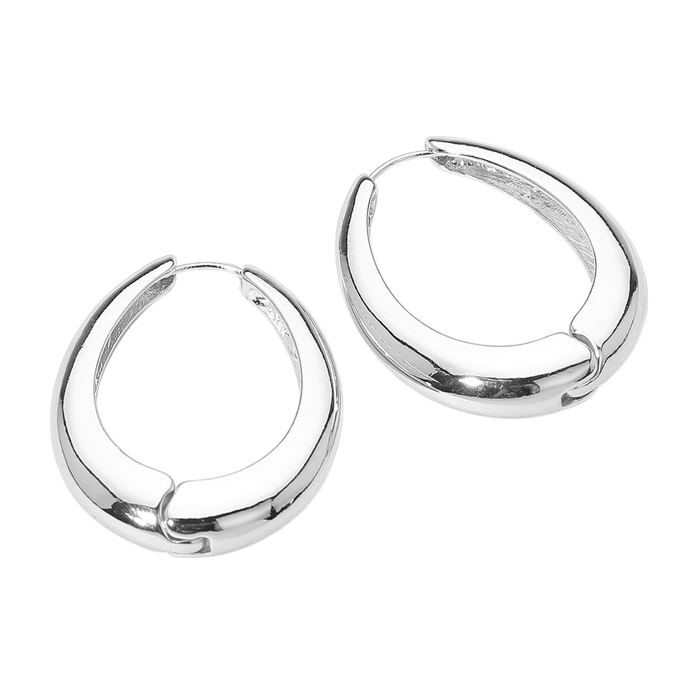 Details • Size : 1.25" X 1.8" • Huggie Back • Stylish chunky oval hoop earrings featuring a bold rounded silhouette perfect for everyday wear or dressing up. Lightweight, easy to fasten, and designed for a modern, polished look. A versatile accessory that adds effortless style to any outfit. • Sterling Silver Dipped • Lead and Nickel Compliant