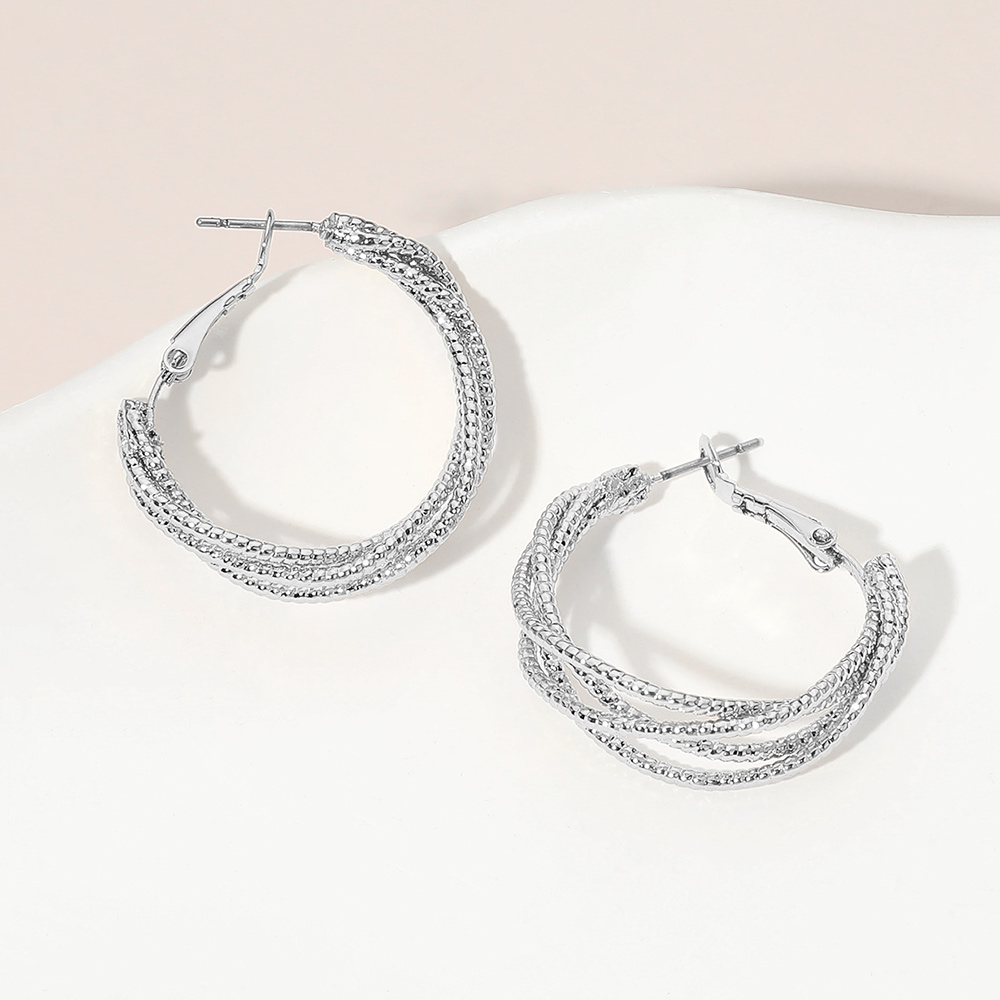 • Elegant layered hoop earrings designed with multiple intertwined strands that create depth and visual interest. A refined yet versatile accessory ideal for daily wear or special occasions, offering a polished statement that pairs effortlessly with casual outfits, work looks, and evening ensembles. Perfect for boutique jewelry assortments and gifting displays.