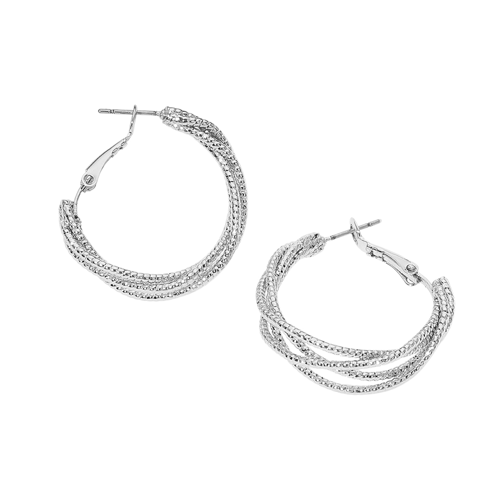 Silver Dipped Layered Textured Hoop Earrings Silver Dipped Layered Textured Hoop Earrings