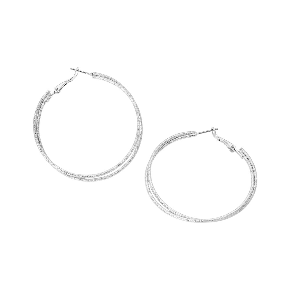 Details • Size : 2" X 2" • Omega Back • Timeless hoop earrings designed with a refined textured finish that adds subtle shine and dimension. Lightweight and easy to wear, this versatile silhouette pairs effortlessly with everyday outfits or elevated looks, making it a staple accessory for boutiques and curated jewelry collections year-round. • Sterling Silver Dipped • Lead and Nickel Compliant