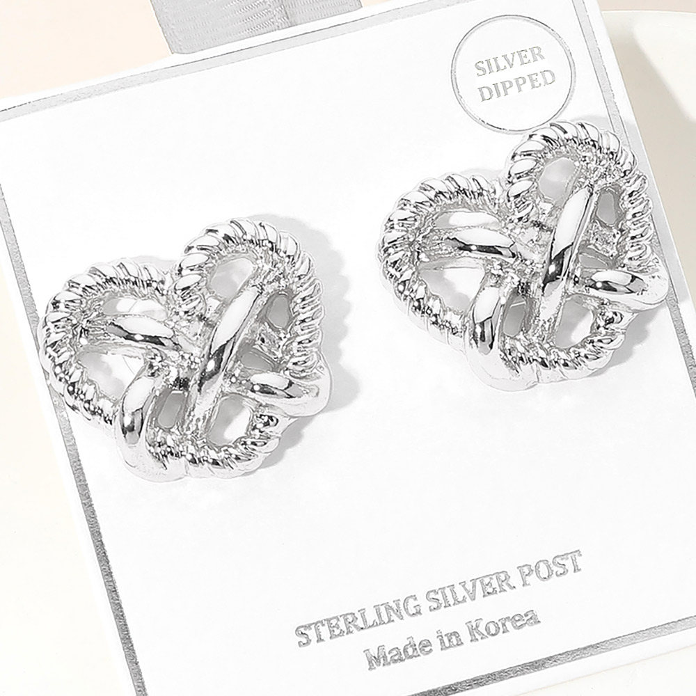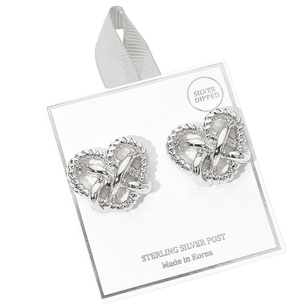Silver Dipped Twisted Knot Heart Earrings Silver Dipped Twisted Knot Heart Earrings Silver Dipped Twisted Knot Heart Earrings