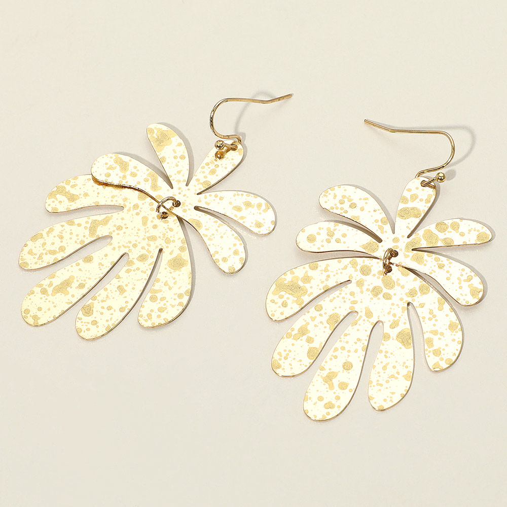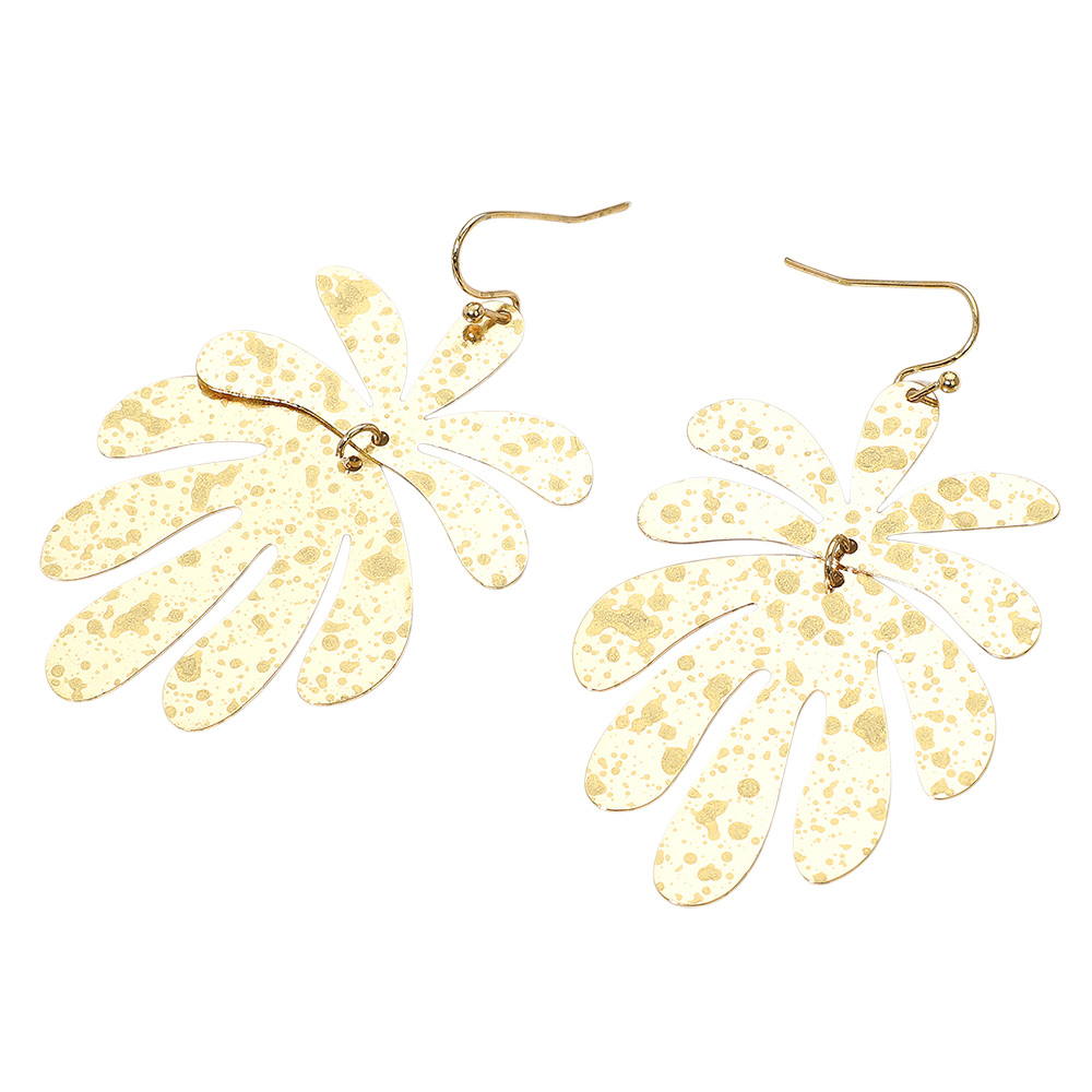 Details • Size : 1.4" X 2.5" • Fish Hook Back • Statement dangle earrings shaped like abstract palm leaves with a hammered texture finish. Lightweight and eye-catching, perfect for adding a bold touch to tropical, casual, or vacation-inspired outfits. • Lead and Nickel Compliant