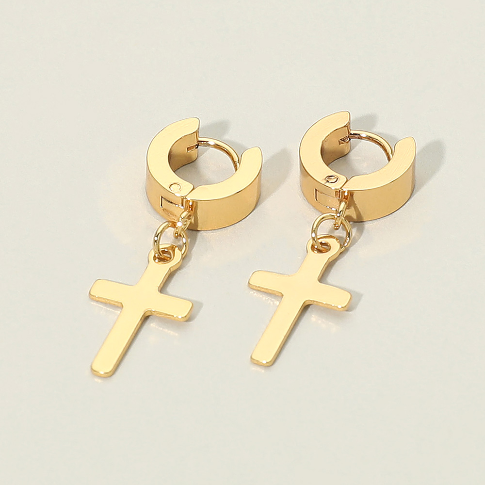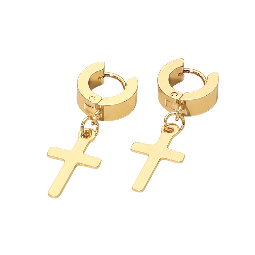 Stainless Steel Cross Charm Dangle Mini Huggie Hoop Earrings