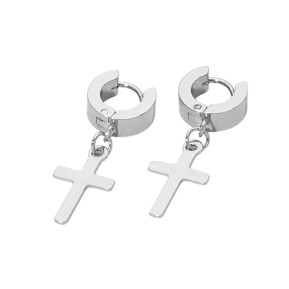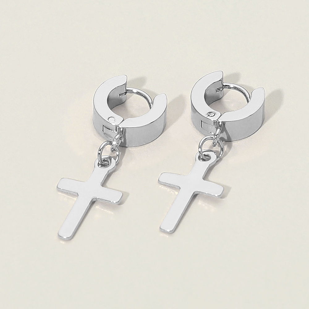 Stainless Steel Cross Charm Dangle Mini Huggie Hoop Earrings Stainless Steel Cross Charm Dangle Mini Huggie Hoop Earrings