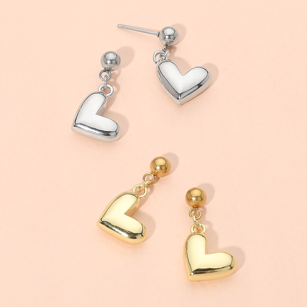 • These heart charm drop stud earrings feature a smooth, rounded heart design suspended from classic stud posts for subtle movement and everyday elegance. The timeless silhouette makes them easy to style with casual outfits or dressy looks, offering a romantic accent that works year-round. Perfect for gifting, boutique collections, or everyday jewelry assortments, these earrings deliver charm, versatility, and lasting appeal in a lightweight, comfortable design.