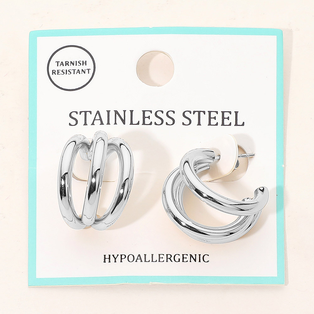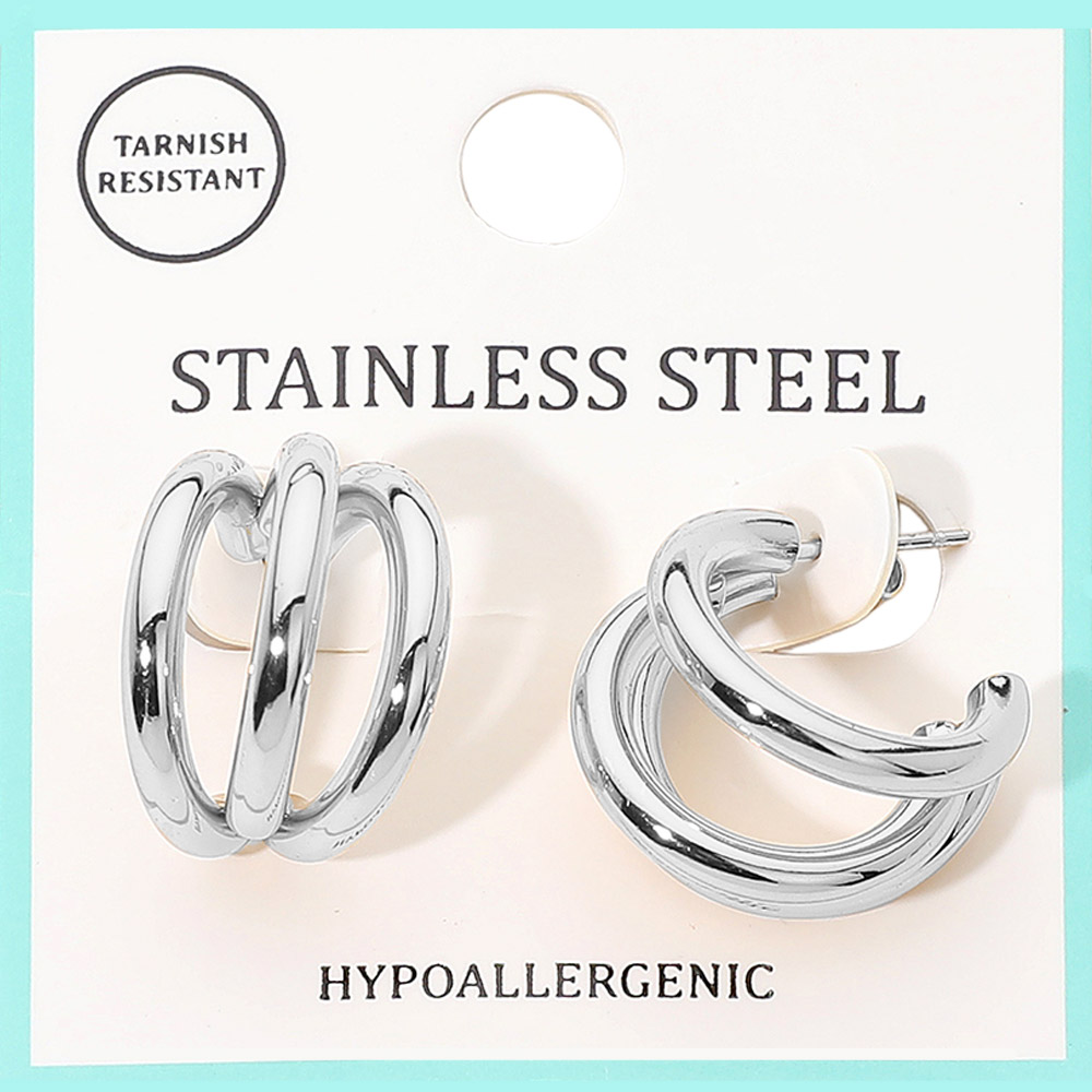 Stainless Steel Triple Hoop Earrings Stainless Steel Triple Hoop Earrings