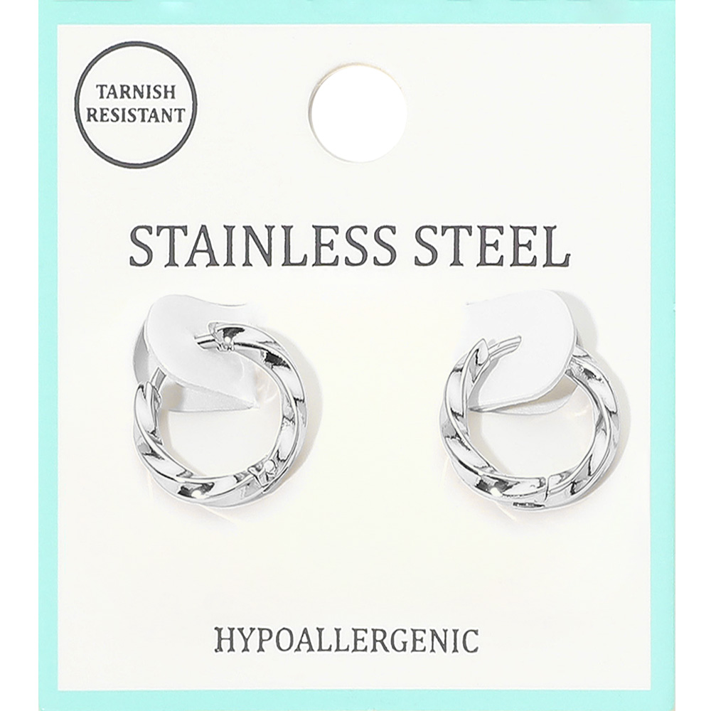 Stainless Steel Twisted Mini Huggie Hoop Earrings