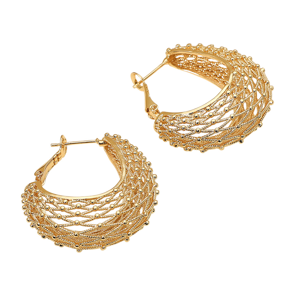 • These textured metal filigree beaded hoop earrings feature an intricate crisscross design with delicate bead accents for a striking textured look. Perfect for adding dimension and elegance to any outfit, they balance bold style with refined detail, making them a standout choice for everyday glamour.