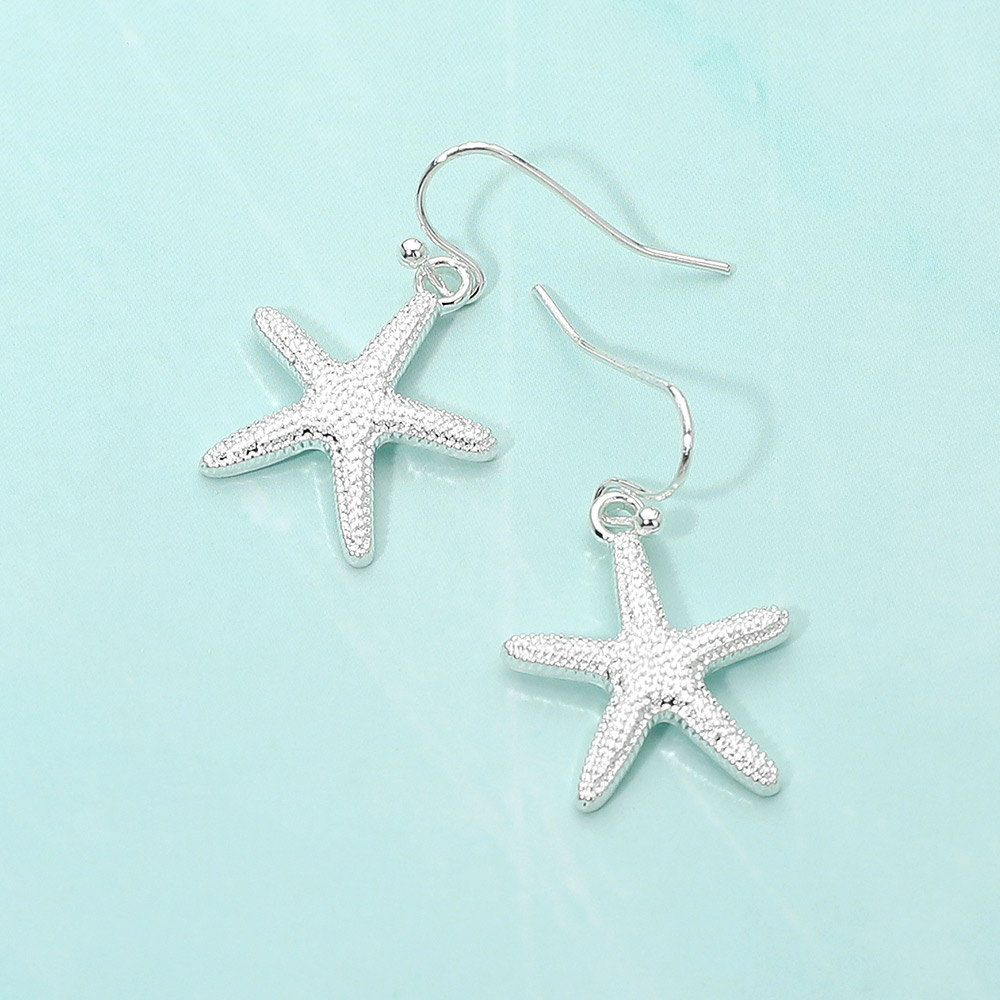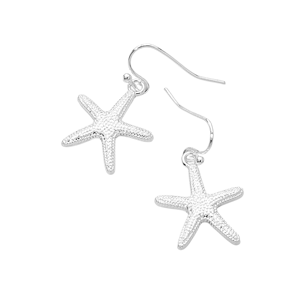 Details • Size : 0.75" X 1.25" • Fish Hook Back • Charming starfish dangle earrings designed with a delicate hook style that adds natural movement and coastal-inspired appeal. This ocean-themed accessory brings a playful yet timeless touch to everyday outfits, making it ideal for beachwear collections, summer styling, and gift-ready assortments that customers love. • Lead and Nickel Compliant