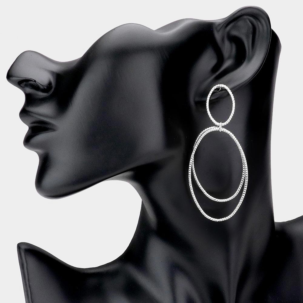 Triple Open Metal Oval Link Dangle Earrings