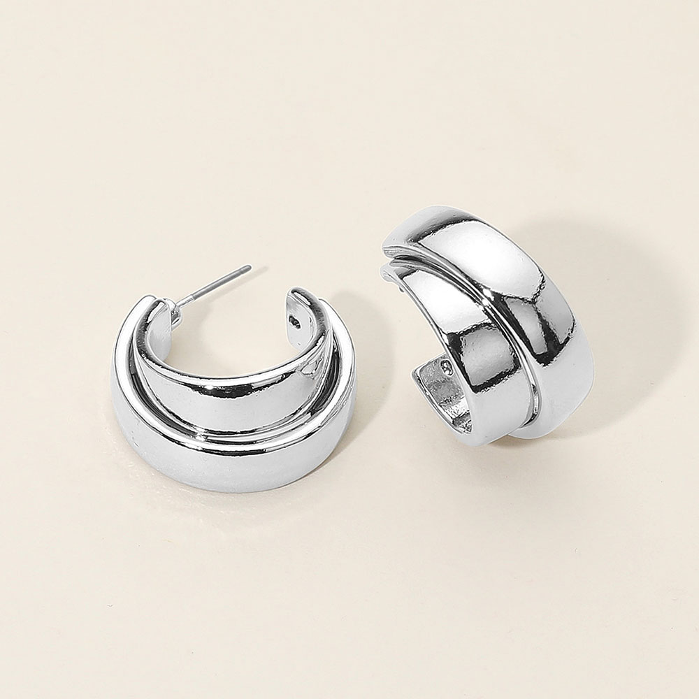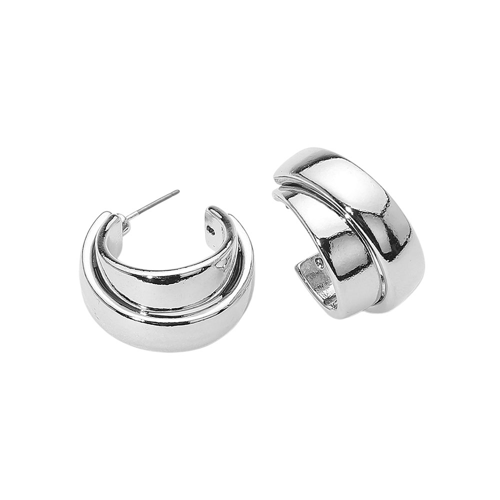 • Bold and modern, these wide hoop earrings feature a polished finish and dimensional curved design. A chic accessory to elevate both casual and formal outfits with contemporary style and striking contrast.