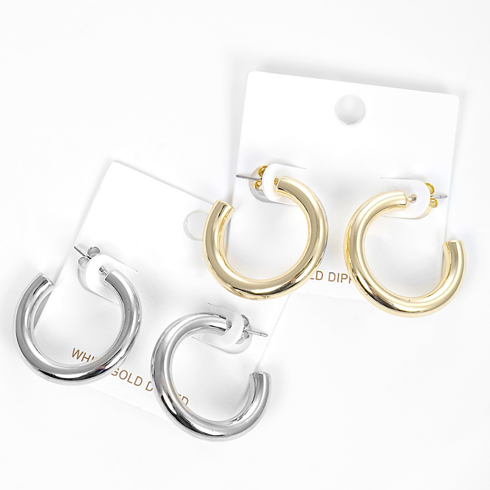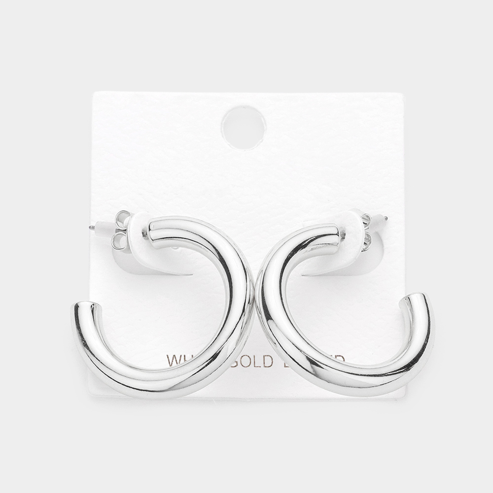 White Gold Dipped 1.25 Inch Metal Hoop Earrings