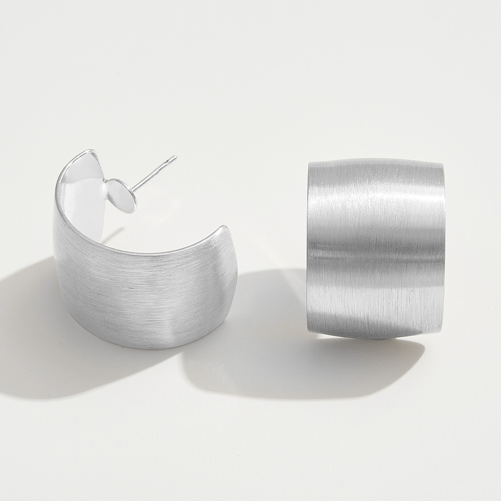 • Bold and stylish wide hoop earrings with a sleek brushed finish, crafted in a contemporary curved design. Lightweight yet impactful, these earrings are perfect for elevating everyday outfits or adding a polished statement touch to evening looks. A versatile accessory for any jewelry collection.