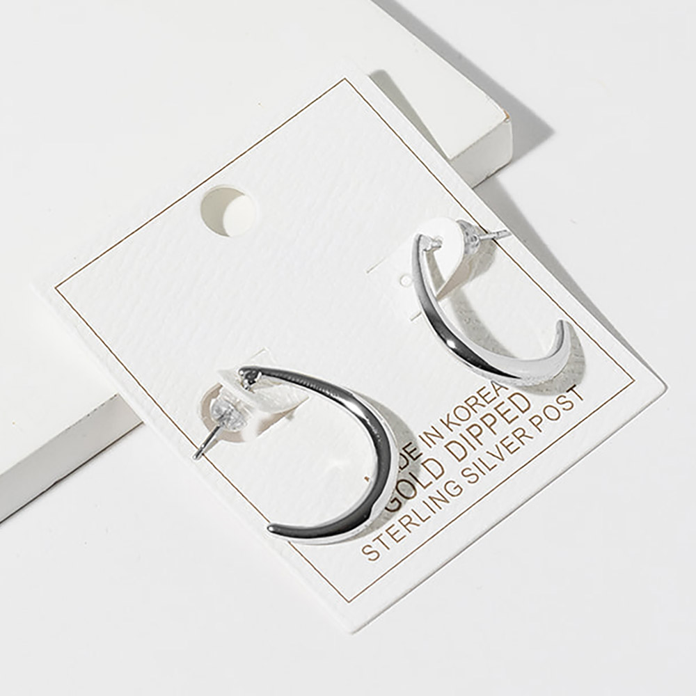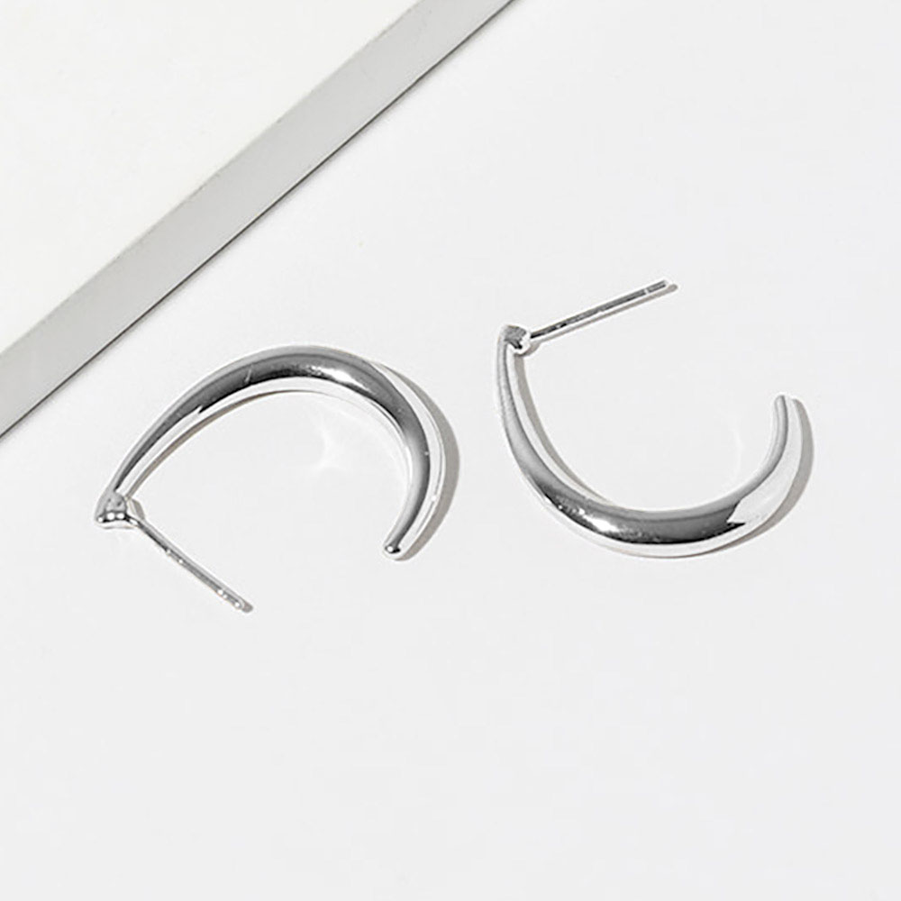 • Sleek crescent stud earrings featuring a smooth curved silhouette that adds subtle style to any look. Designed for everyday wear, these lightweight studs offer a modern, minimalist feel that pairs easily with casual outfits, workwear, or layered ear styling for a clean, timeless finish.