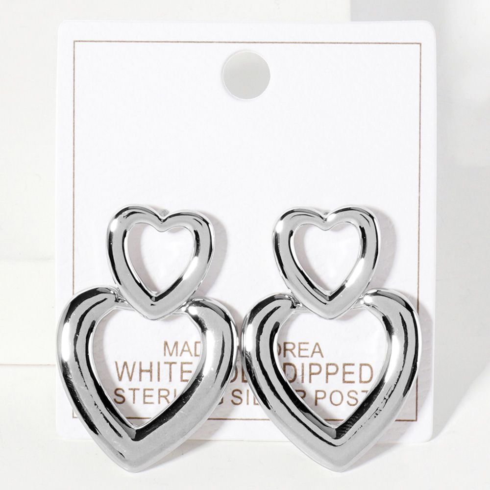 2PCS - Rhinestone Embellished Metal Heart Accented Pearl Necklaces