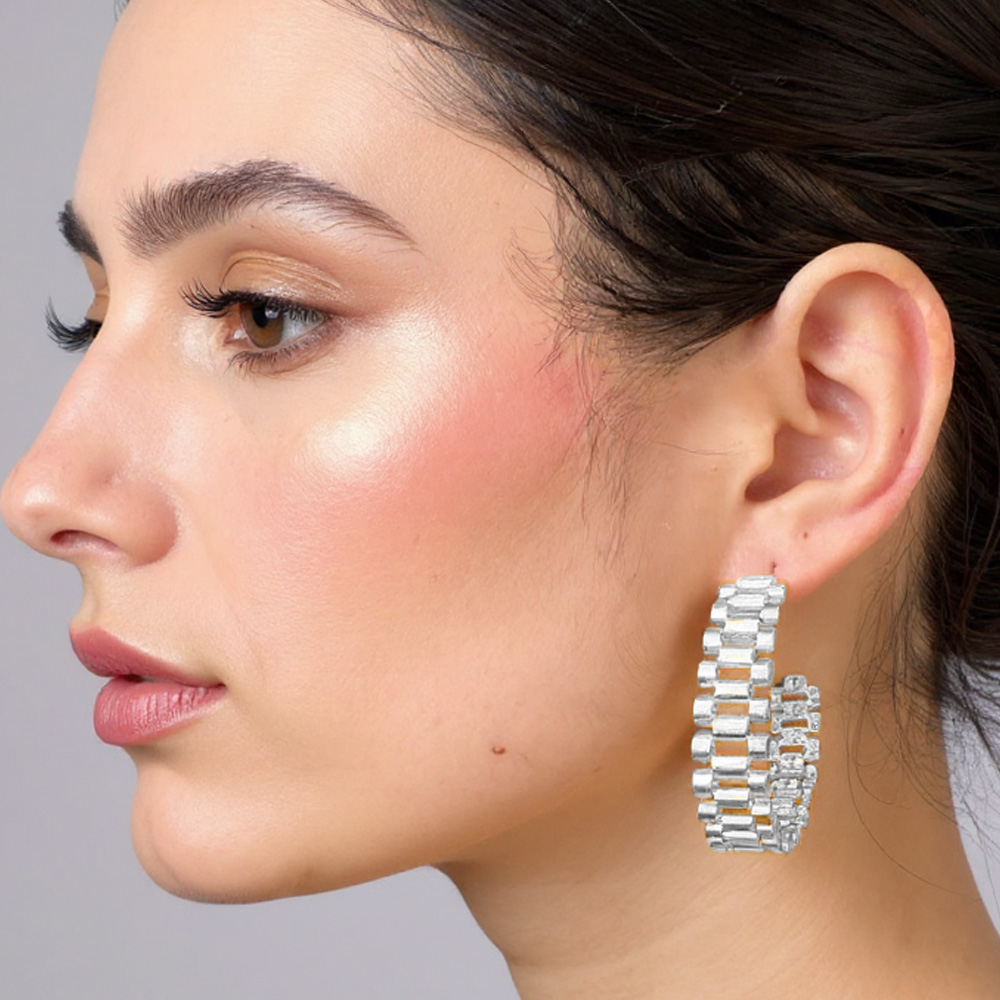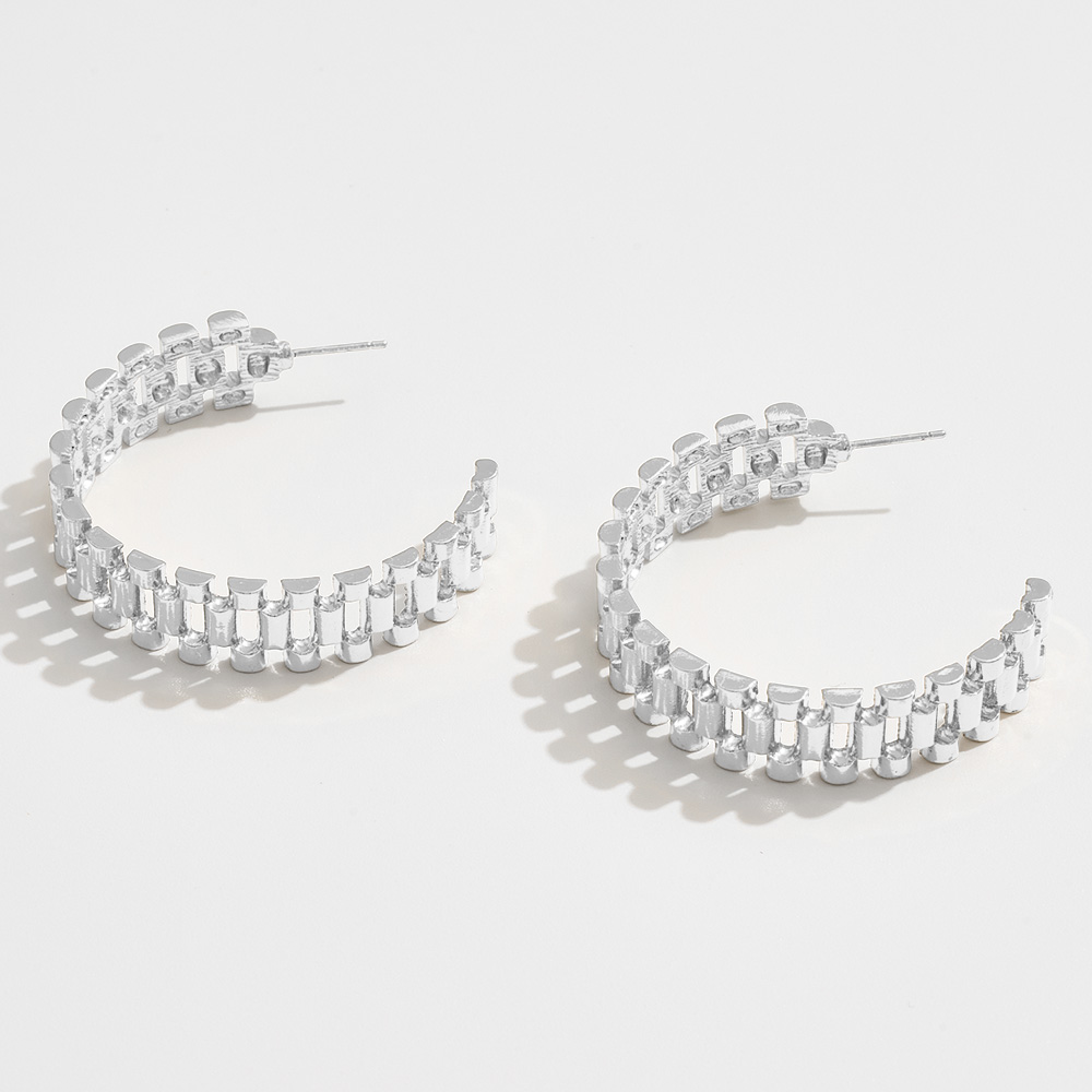 Details • Size : 1.75" X 1.75" X 0.4" • Post Back • Chic geometric hoop earrings designed with a unique cutout pattern that blends modern elegance with bold detail. Lightweight and versatile, these hoops add a stylish edge to casual or dressy outfits. A standout accessory that enhances any jewelry collection with contemporary flair. • Brass • Gold Dipped • Hypoallergenic • Lead and Nickel Compliant • Made In Korea
