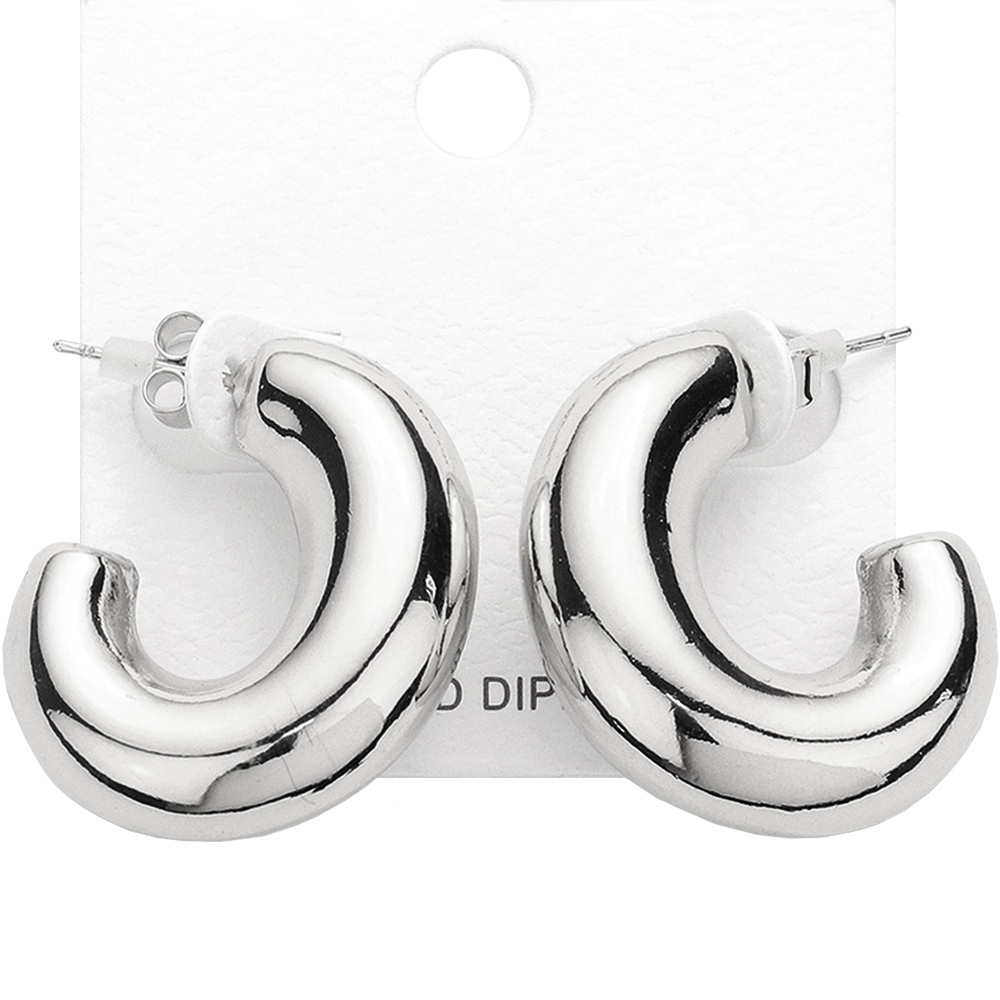 • Bold curved hoop stud earrings with a smooth, sculptural silhouette that adds statement style to everyday looks. Designed for comfortable wear with secure post-back closure, these versatile hoops layer easily with casual or dressed-up outfits for effortless modern appeal.
