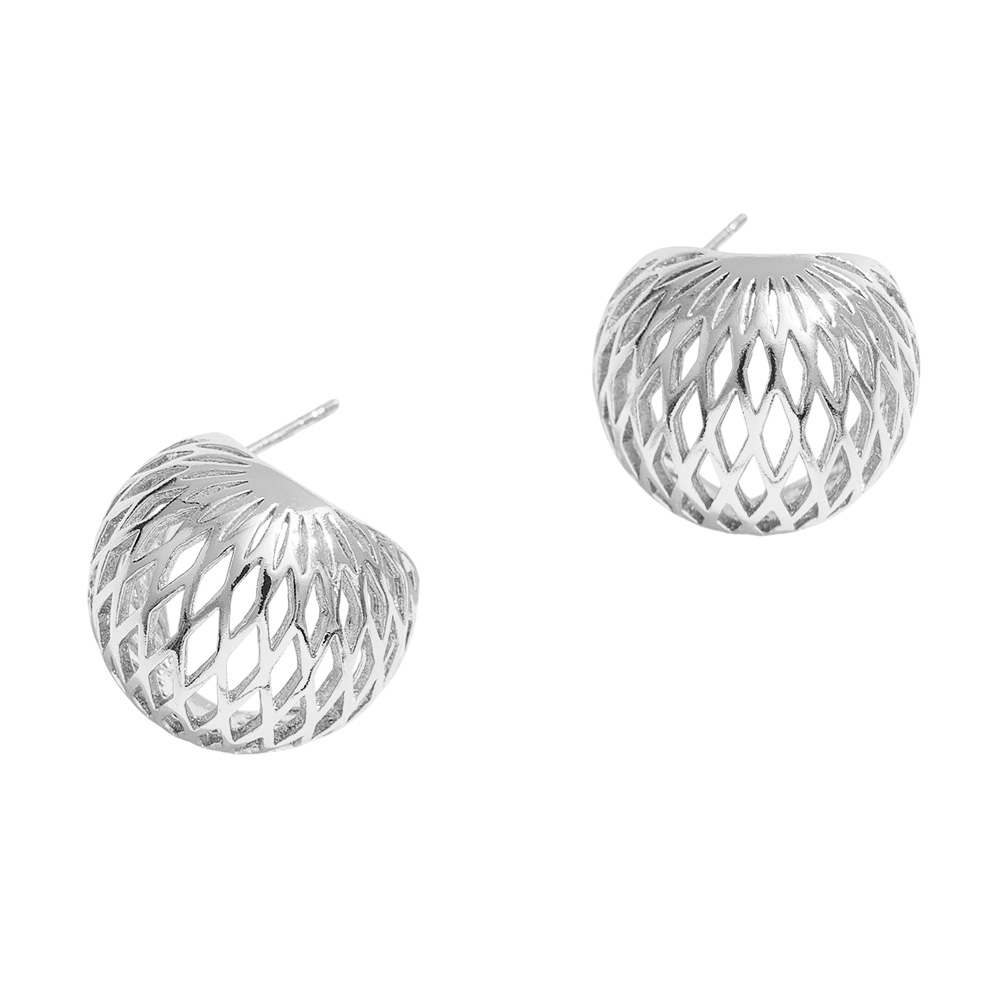 Details • Size : 0.75" X 0.75" • Post Back • Stylish cutout dome stud earrings featuring a textured open lattice design that blends bold structure with lightweight comfort. Perfect for adding a touch of modern elegance to casual or dressy looks, these earrings stand out as a versatile accessory in any jewelry collection. • Brass • Gold Dipped • Hypoallergenic • Lead and Nickel Compliant • Made In Korea