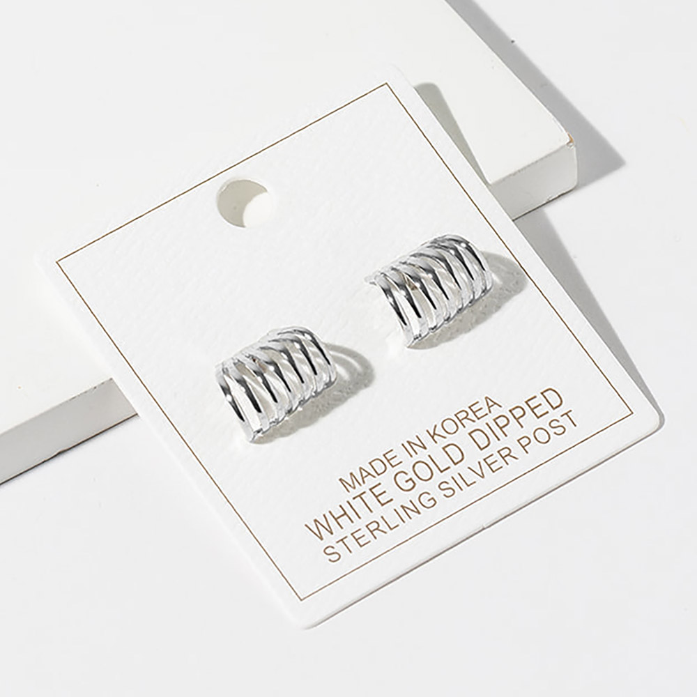 White Gold Dipped Ribbed Cuff Stud Earrings