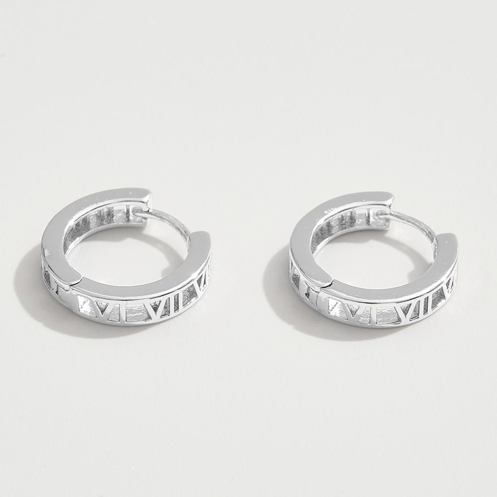 Details • Size : 0.6" X 0.6" X 0.2" • Huggie Back • These Roman numeral hoop earrings showcase a timeless cutout design that blends classic symbolism with modern style. Their sleek silhouette makes them versatile for everyday wear while adding a distinctive touch to both casual and elevated outfits. • Brass • Gold Dipped • Hypoallergenic • Lead and Nickel Compliant • Made In Korea