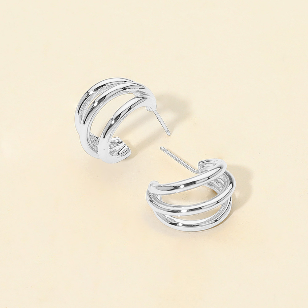 • Sleek triple hoop earrings featuring a layered open band design that blends classic and contemporary style. Lightweight and versatile, these earrings are perfect for daily wear or evening outings, making them an effortless accessory to elevate any outfit with a bold yet refined touch.
