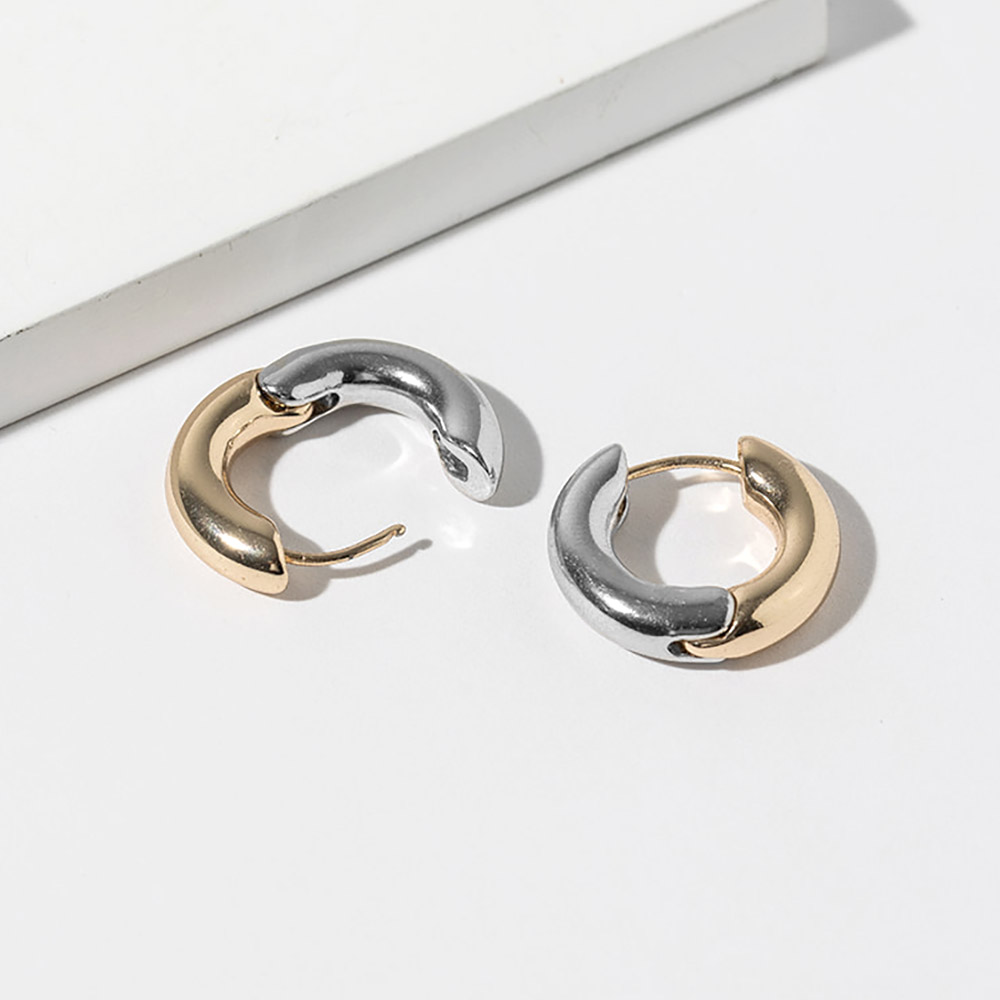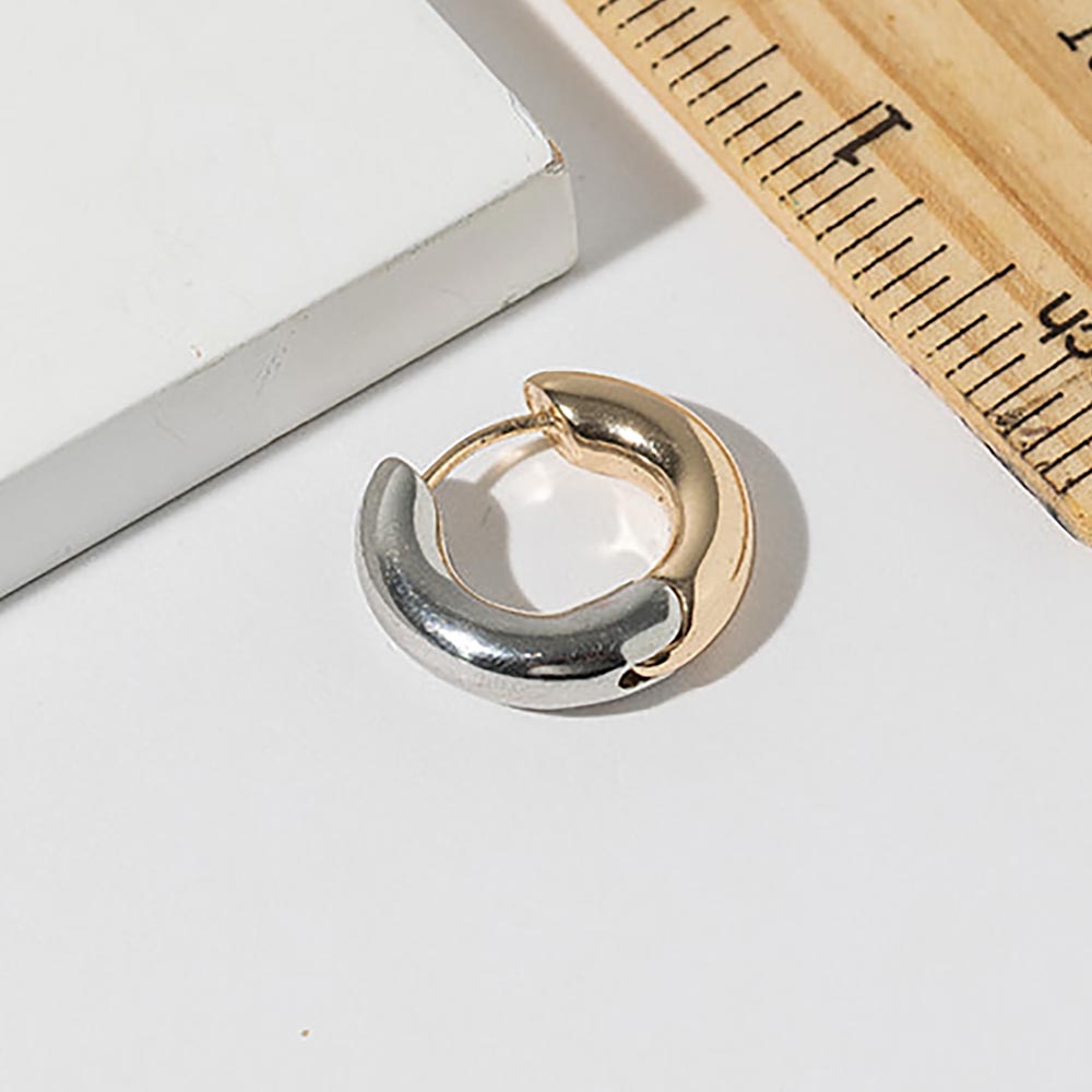 • Sleek huggie hoop earrings featuring a compact rounded silhouette with a modern dual-finish design and secure hinged closure. Ideal for everyday wear, work outfits, and minimalist styling, these versatile hoops add polished sophistication, subtle contrast, and effortless elegance to any jewelry collection.