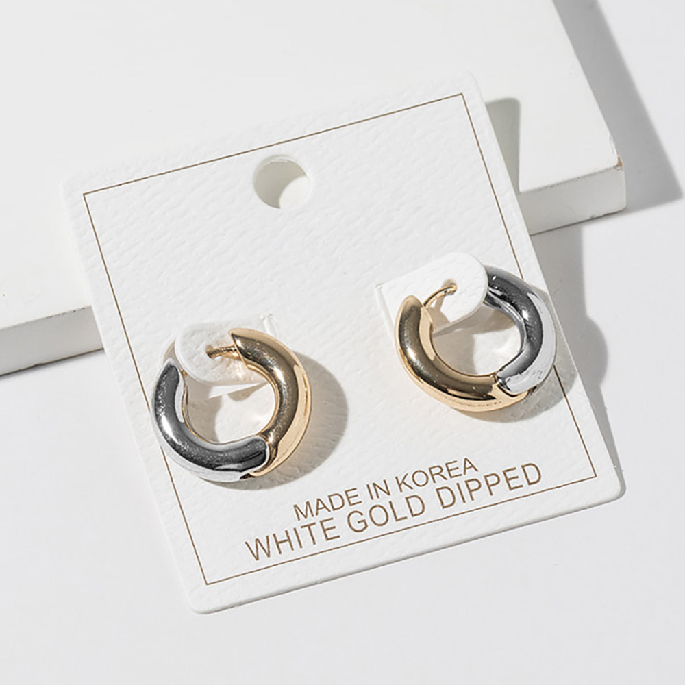 White Gold Dipped Two Tone Mini Huggie Hoop Earrings