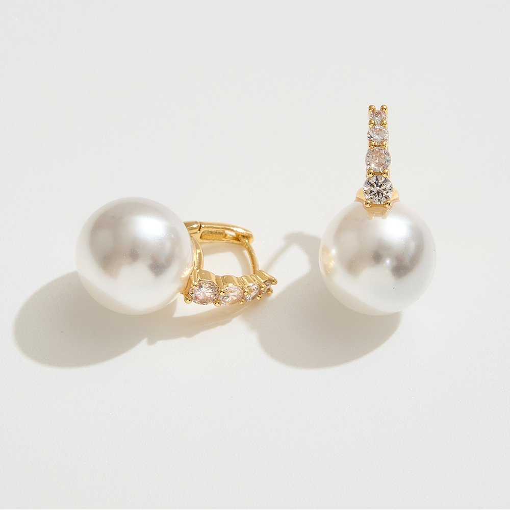 Details • Size : 0.7" X 1" • Hugie Back • These graceful drop earrings feature a lustrous pearl suspended from a line of sparkling stones, blending timeless charm with modern elegance. Perfect for weddings, evening events, or everyday sophistication, they add a refined touch to any jewelry collection. • Brass • CZ Cubic Zirconia • Gold Dipped • Hypoallergenic • Lead and Nickel Compliant • Made In Korea