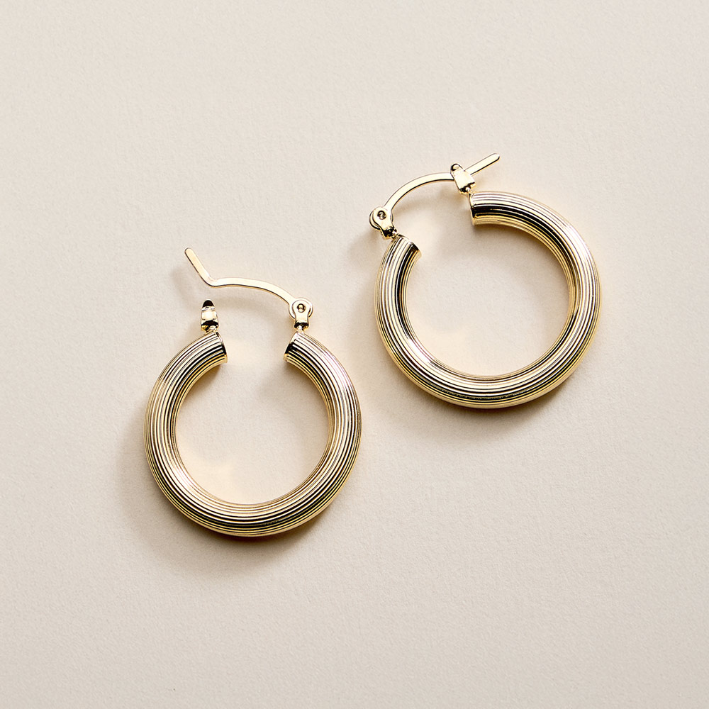 Details • Size : 1" X 1" • Pin Catch • Classic hoop earrings designed with a smooth, rounded profile that delivers timeless appeal and everyday versatility. The clean silhouette offers effortless styling for casual looks or polished outfits. A staple accessory ideal for layering, gifting, or adding a refined finish to any jewelry collection. • Gold Filled • Hypoallergenic • Lead and Nickel Compliant • Made In Brazil