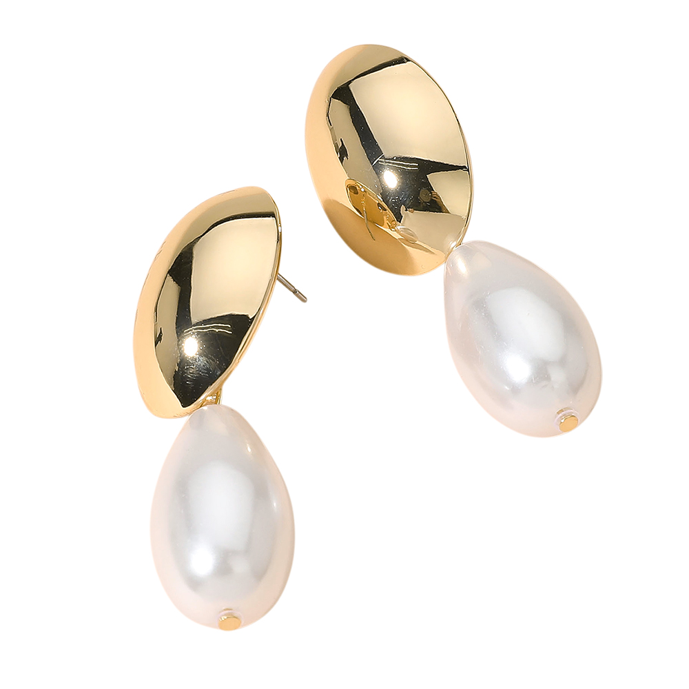 Pearl Centered Rhinestone Pave Simple Stud Earrings