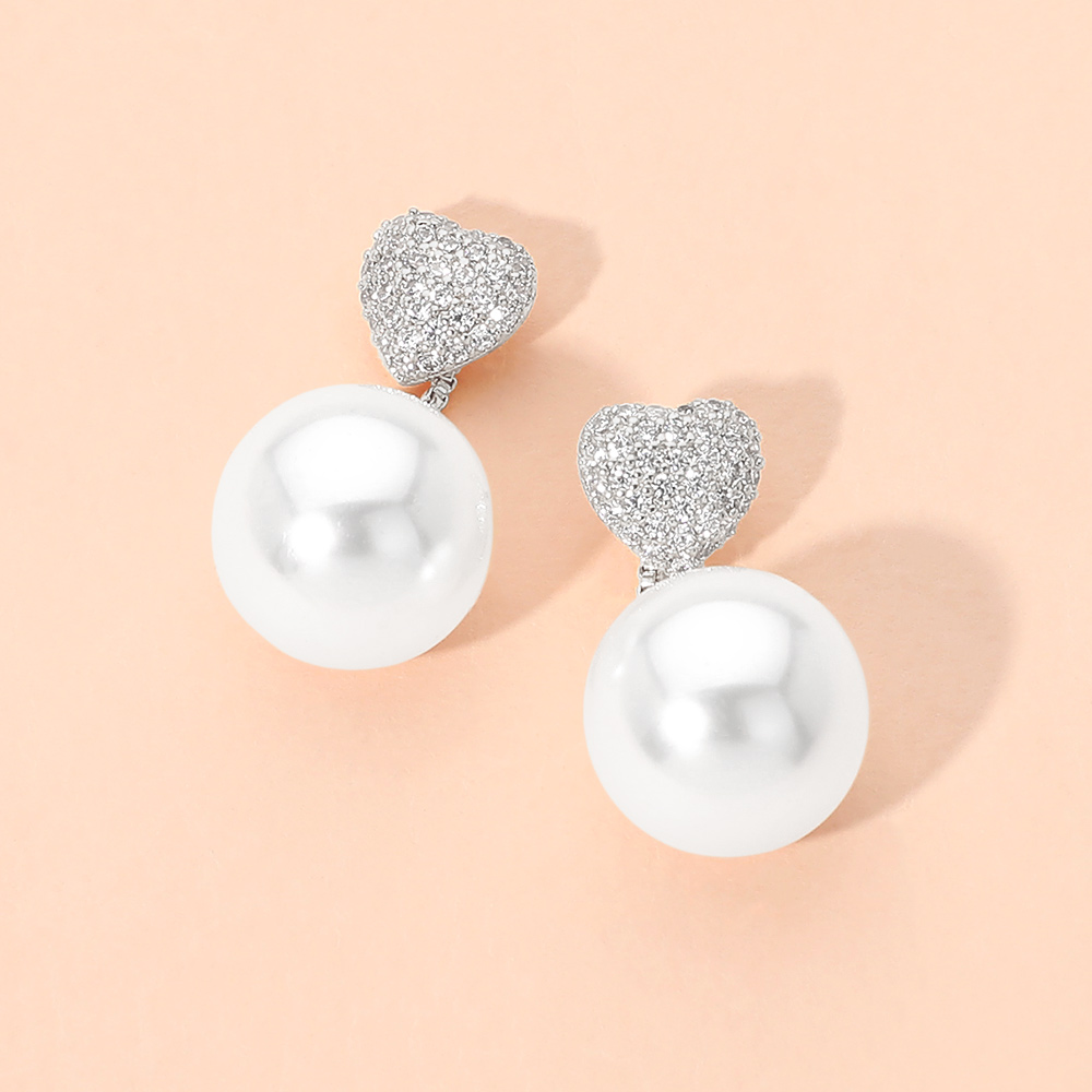 CZ Pave Heart Accent Pearl Drop Earrings CZ Pave Heart Accent Pearl Drop Earrings CZ Pave Heart Accent Pearl Drop Earrings