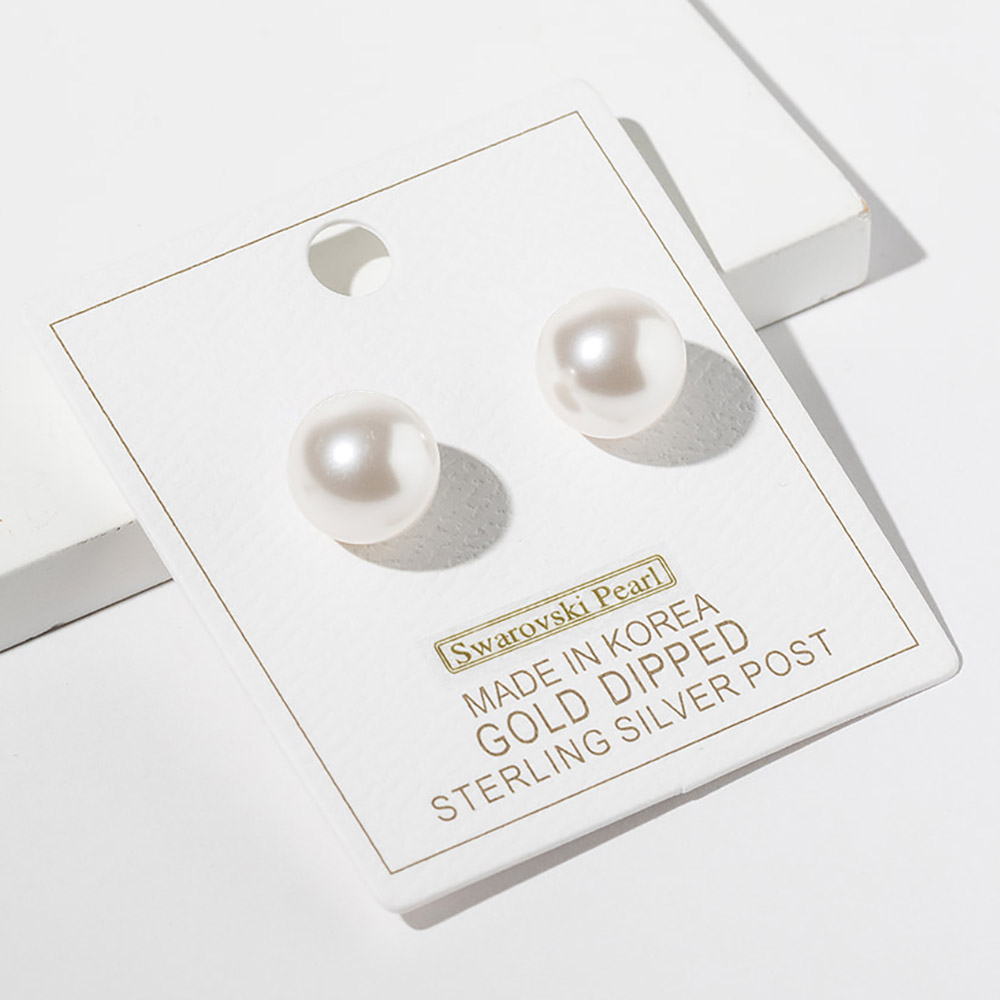 • These classic swarovski pearl stud earrings exude timeless sophistication and effortless elegance. Designed with a refined finish and secure sterling silver post, they complement any look—from daily wear to formal occasions—offering a touch of understated luxury and lasting beauty.