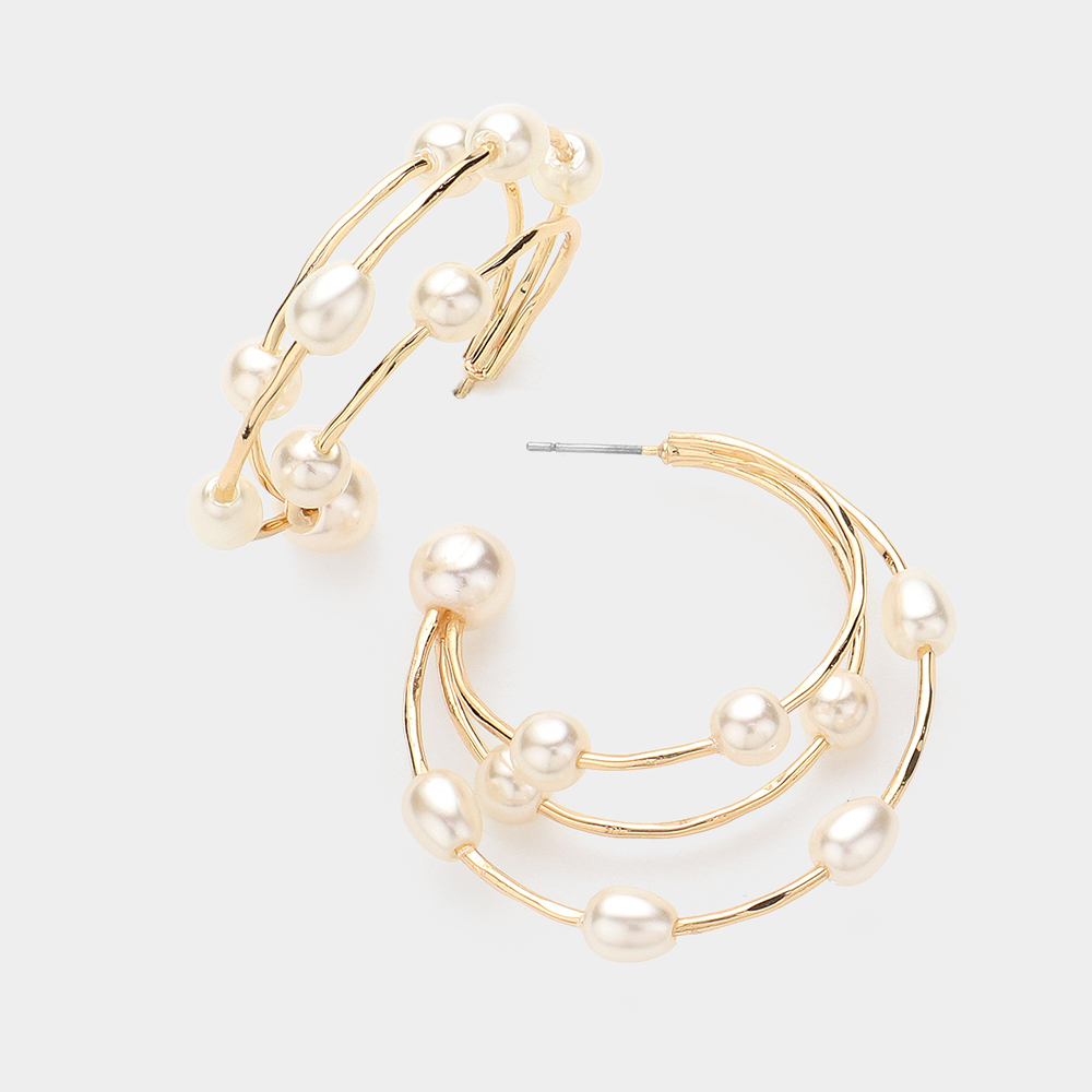 Pearl Accent Textured Curved Metal Clip On Earrings