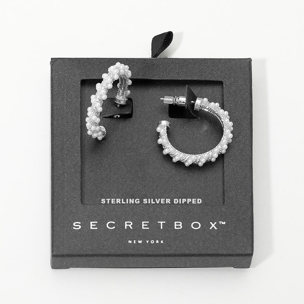 SECRET BOX_14K Gold Dipped Pearl Twisted Pave Hoop Earrings