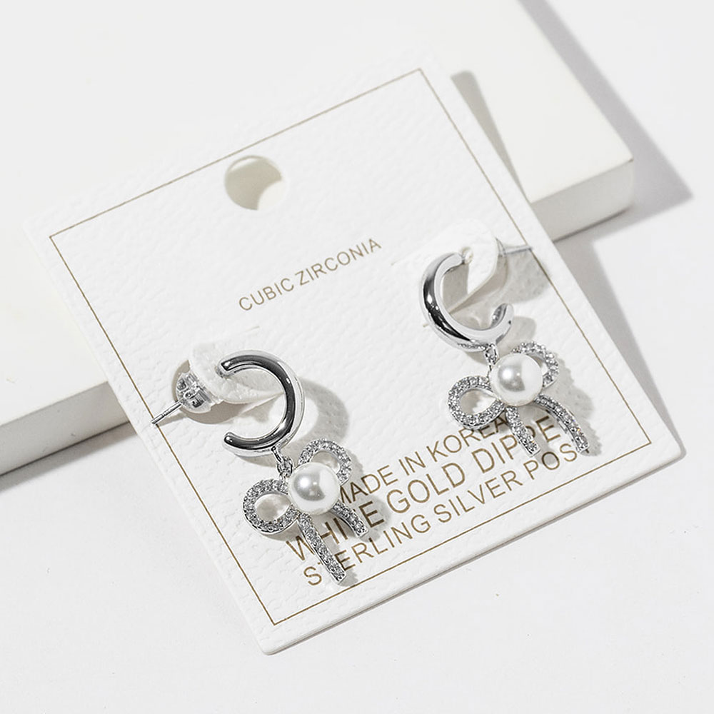 White Gold Dipped Pearl Center CZ Paved Bow Drop Mini Hoop Earrings White Gold Dipped Pearl Center CZ Paved Bow Drop Mini Hoop Earrings White Gold Dipped Pearl Center CZ Paved Bow Drop Mini Hoop Earrings White Gold Dipped Pearl Center CZ Paved Bow Drop Mini Hoop Earrings