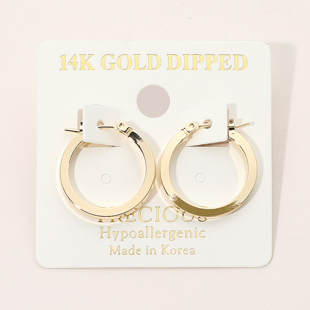 Details • Size : 0.8" X 0.8" • Pin Catch • Refine your accessory collection with these polished hoop earrings designed for effortless daily styling. Their smooth circular silhouette and lightweight feel make them perfect for work, casual outings, or evening wear, offering versatile elegance with comfortable all-day use. • Gold Dipped • Hypoallergenic • Made In Korea