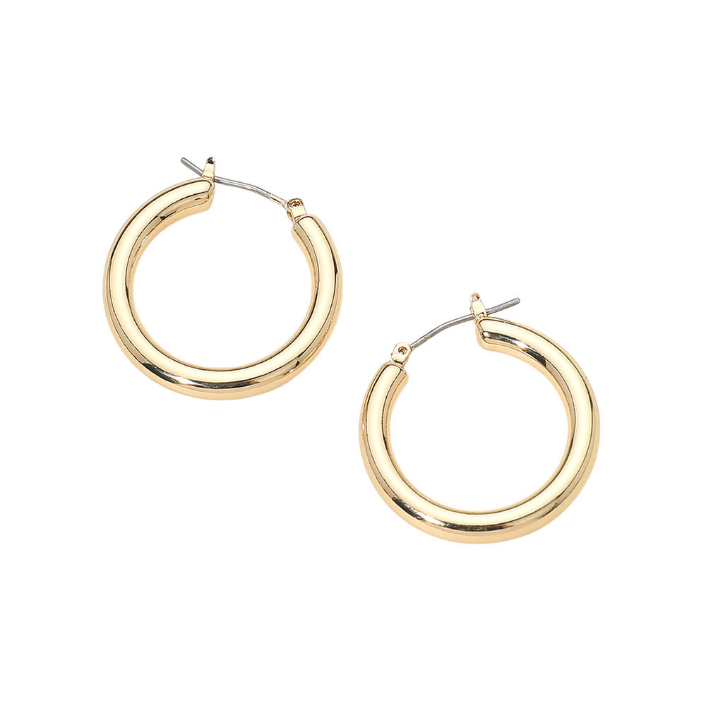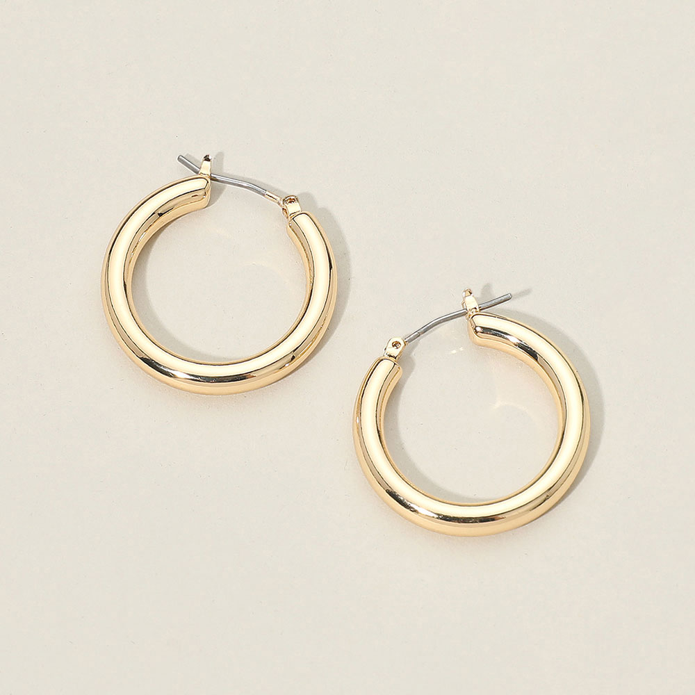 Details • Size : 1.2" X 1.2" • Pin Catch • Timeless thick round hoop earrings featuring a smooth, polished finish that adds a bold yet versatile touch to any style. Lightweight and easy to wear for daily outfits or special occasions, these essential hoops offer a modern, minimal design that complements every look effortlessly. • Lead and Nickel Compliant • Gold Dipped