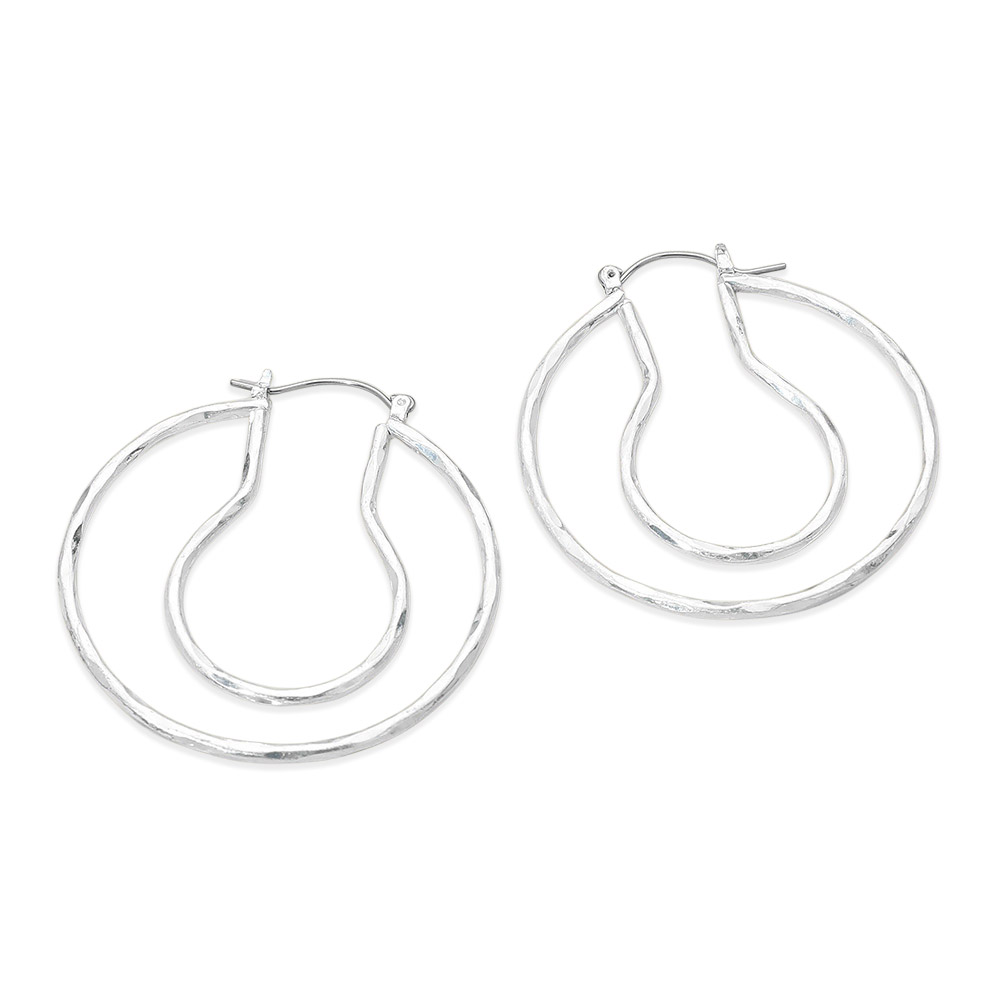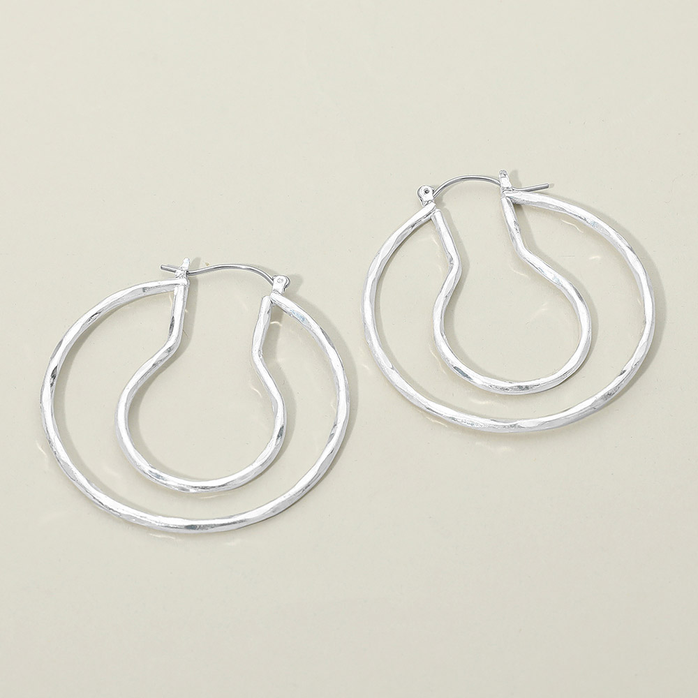 Details • Size : 1.8" X 1.8" • Pin Catch • Modern hoop earrings with an organically shaped, textured silhouette that adds subtle dimension and visual interest. Designed for effortless wear, these hoops bring a refined yet relaxed feel that pairs easily with casual looks, office styling, or elevated everyday outfits. • Lead and Nickel Compliant