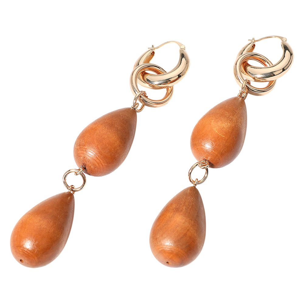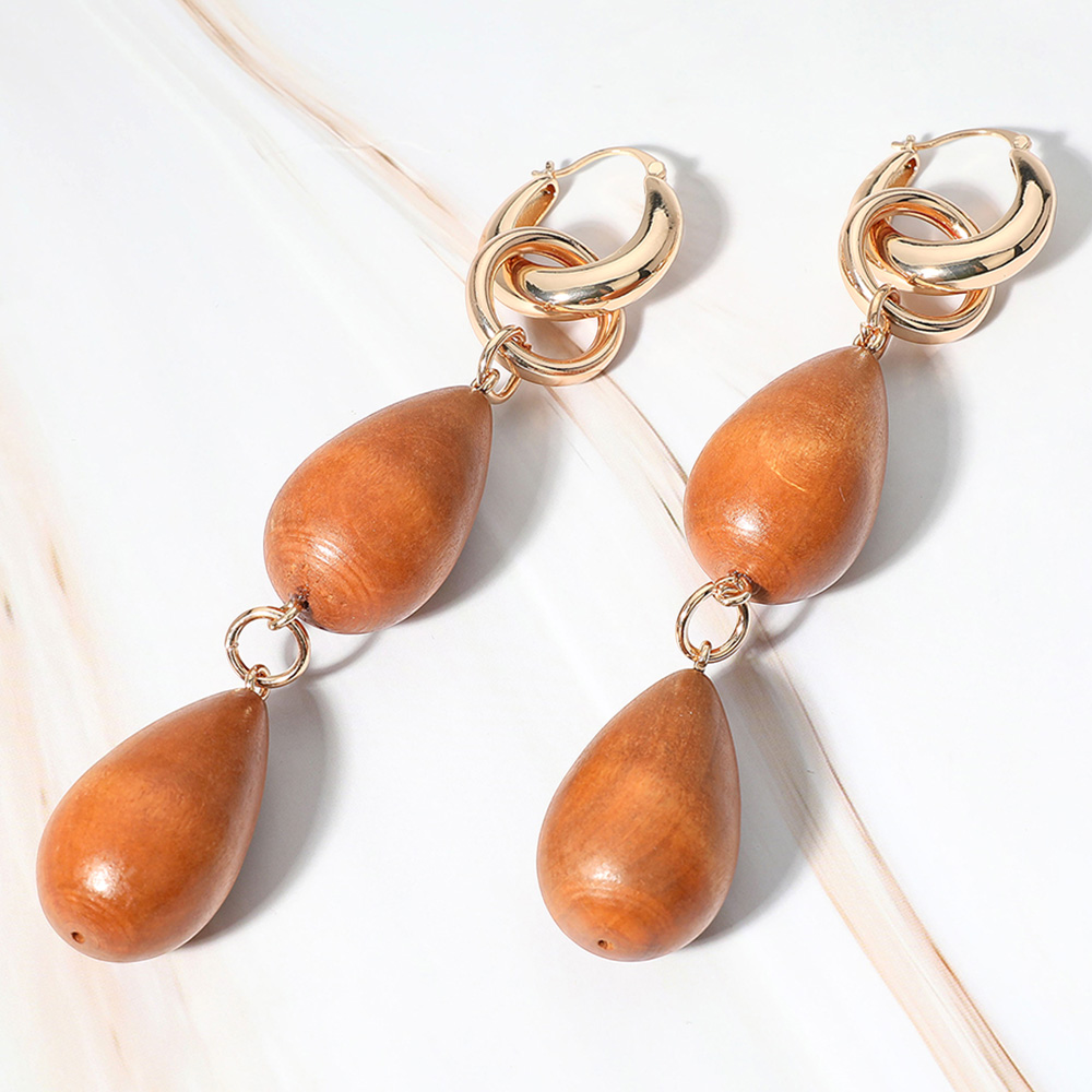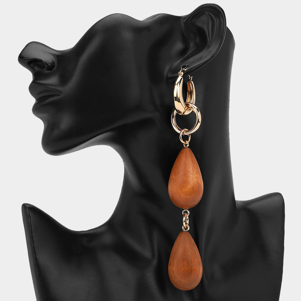 Oversized Wooden Teardrop Link Dropdown Pin Catch Earrings