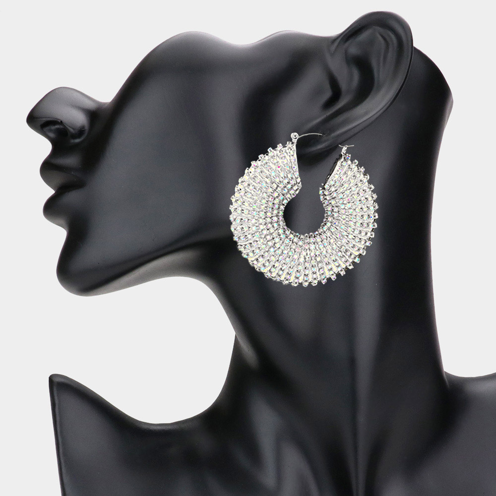 Rhinestone Cluster Embellished Chunky Hoop Pin Catch Earrings