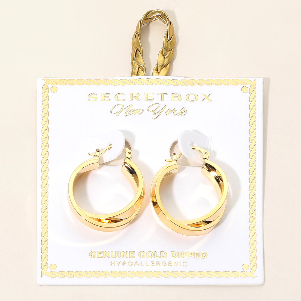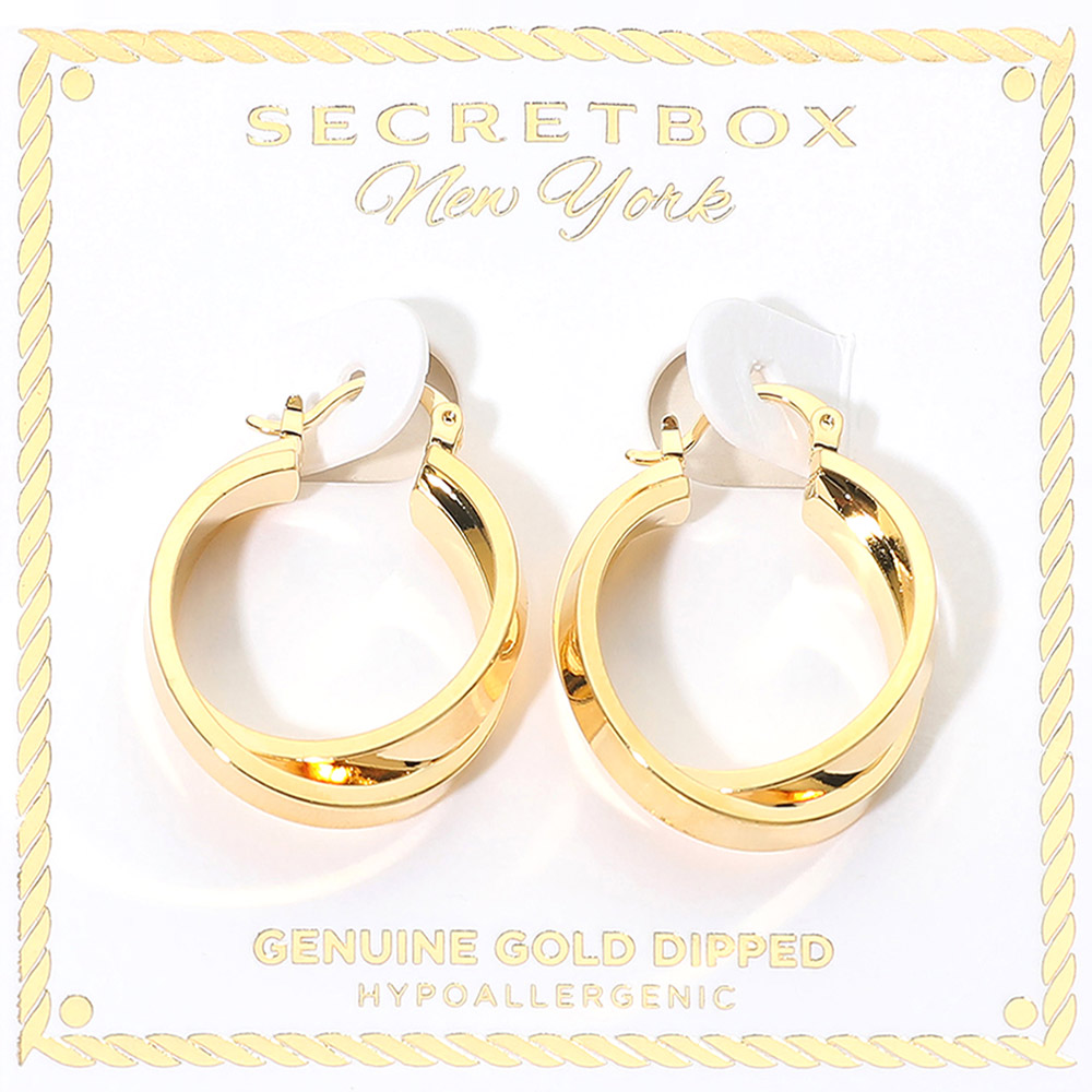 SECRET BOX_Genuine Gold Dipped Hypoallergenic Twisted Pin Catch Hoop Earrings