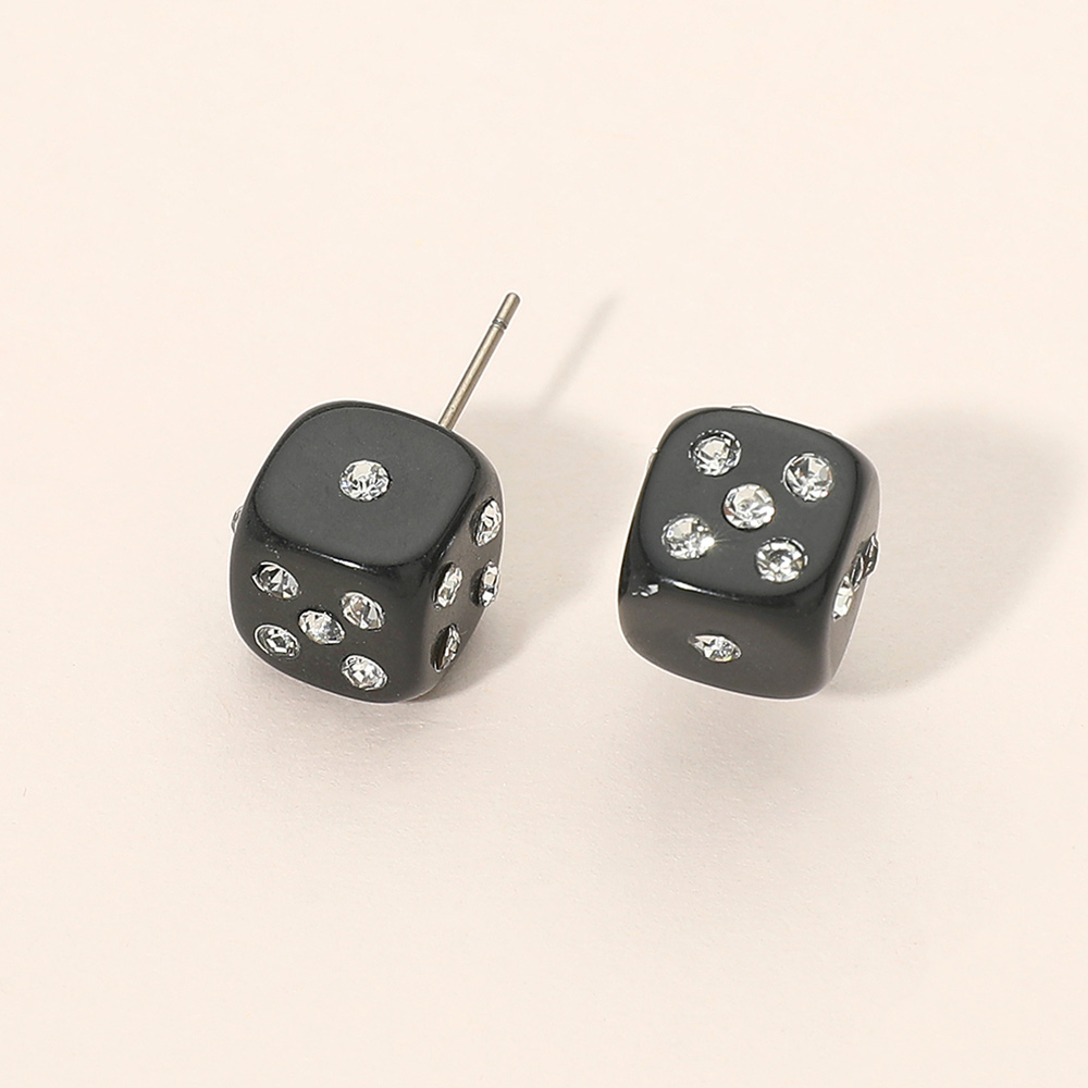 Details • Size : 0.3" X 0.3" X 0.3" • Post Back • Playful stud earrings designed in a classic dice shape with sculpted dot detailing for a bold yet compact look. These novelty studs add character and charm to everyday outfits, themed collections, and statement accessory assortments while remaining easy to wear and style. • Hypoallergenic • Lead and Nickel Compliant