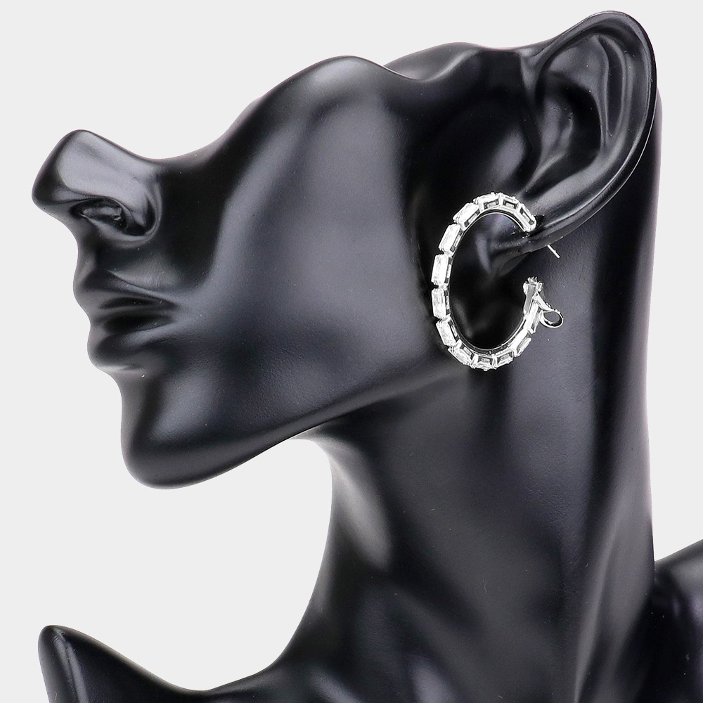 Rectangle Stone Cluster Hoop Earrings