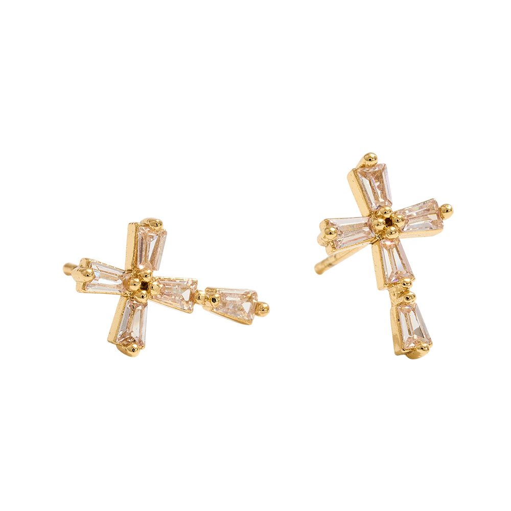 14K Gold Dipped CZ Stone Cross Stud Earrings 14K Gold Dipped CZ Stone Cross Stud Earrings 14K Gold Dipped CZ Stone Cross Stud Earrings