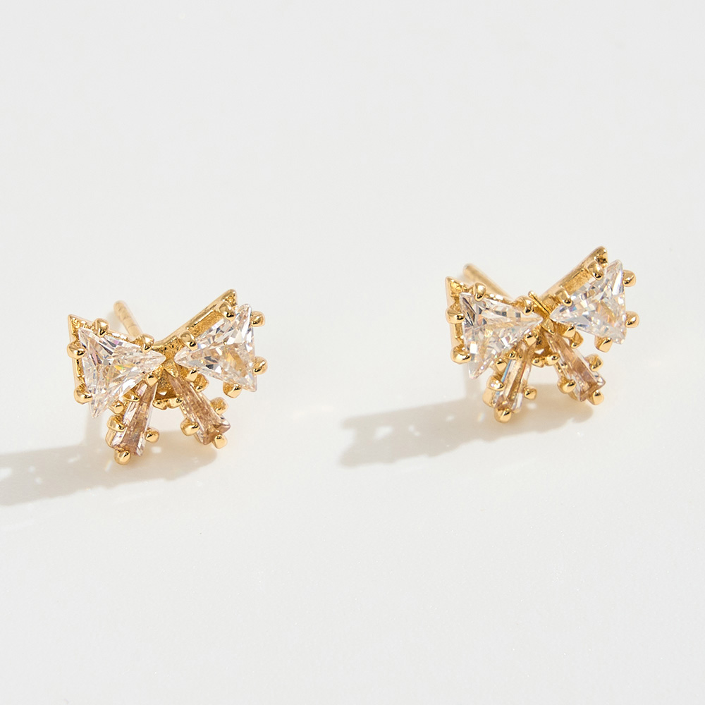 14K Gold Dipped CZ Stone Mini Bow Stud Earrings 14K Gold Dipped CZ Stone Mini Bow Stud Earrings 14K Gold Dipped CZ Stone Mini Bow Stud Earrings