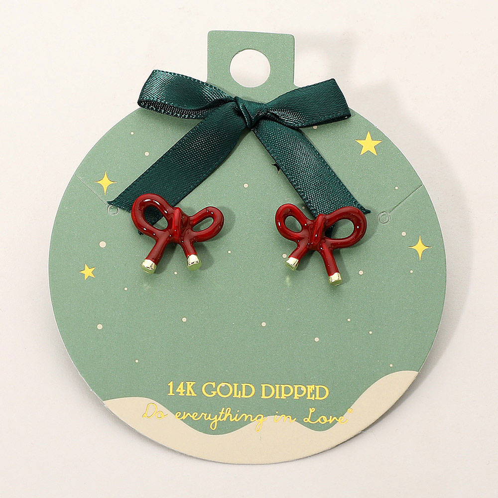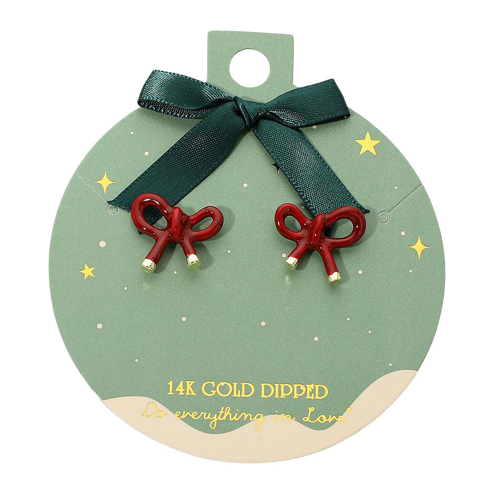 Details • Size : 0.75" X 0.6" • Post Back • Whimsical bow knot stud earrings featuring a smooth, sculpted design with charming tipped ends. Perfect for festive outfits, everyday wear, or gifting, these petite studs add a playful yet elegant accent to any look. A delightful accessory for seasonal celebrations and special moments. • Gold Dipped • Hypoallergenic • Lead and Nickel Compliant • Made In Korea