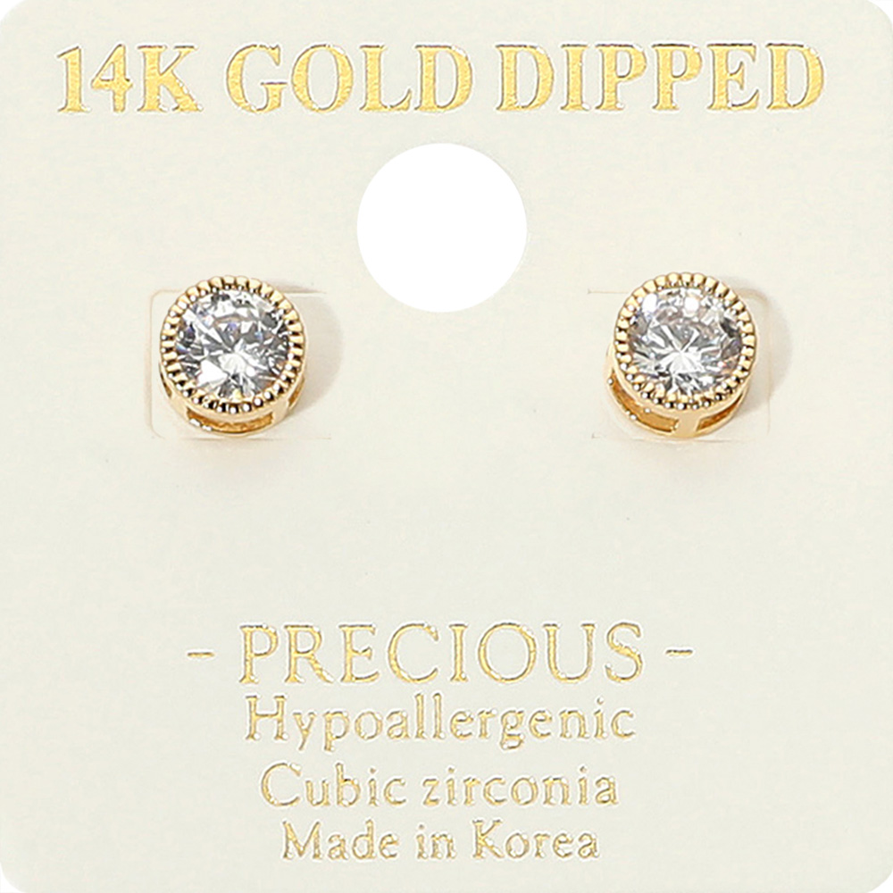 14K Gold Dipped Hypoallergenic Round CZ Stud Earrings